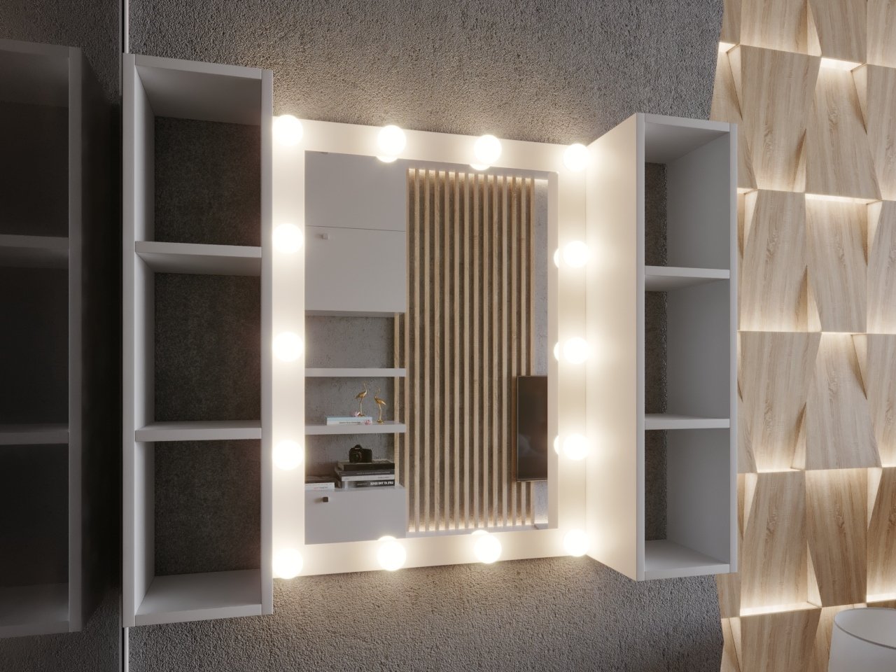 Зеркало с полками в спальню