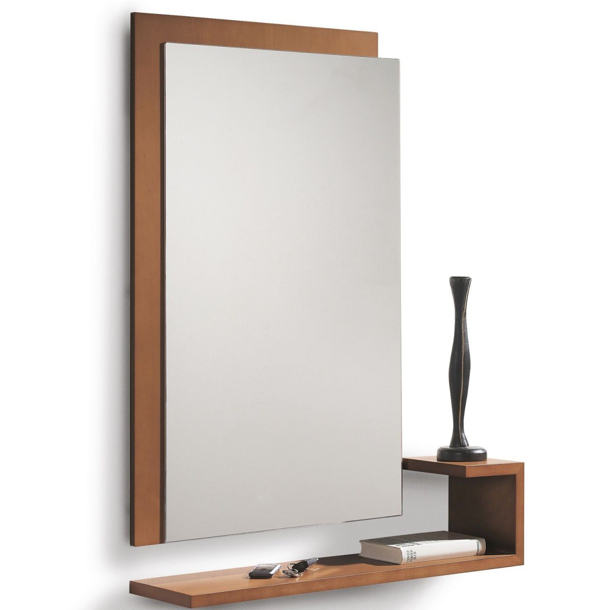 Зеркало с полочками из дерева