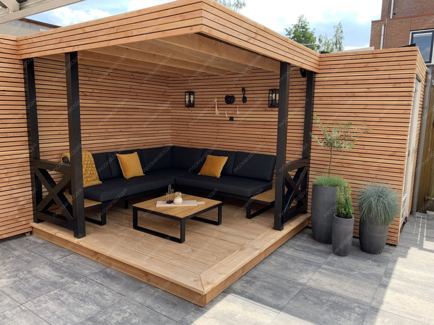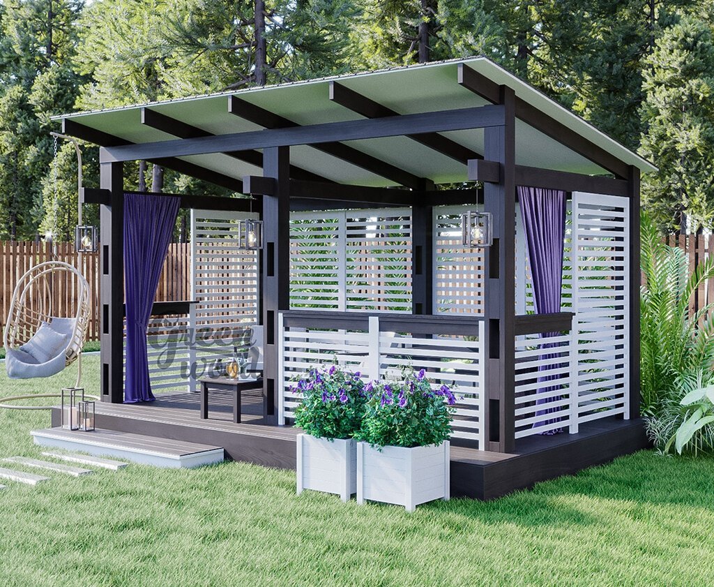 Закрытая беседка с перголой