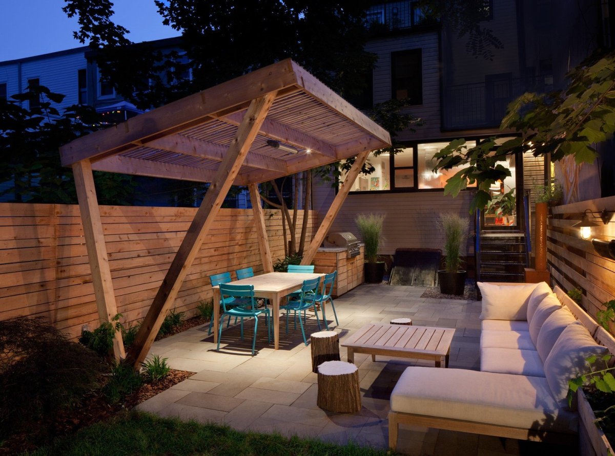 Зона барбекю с перголой