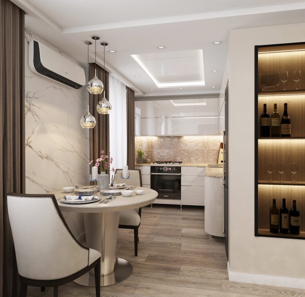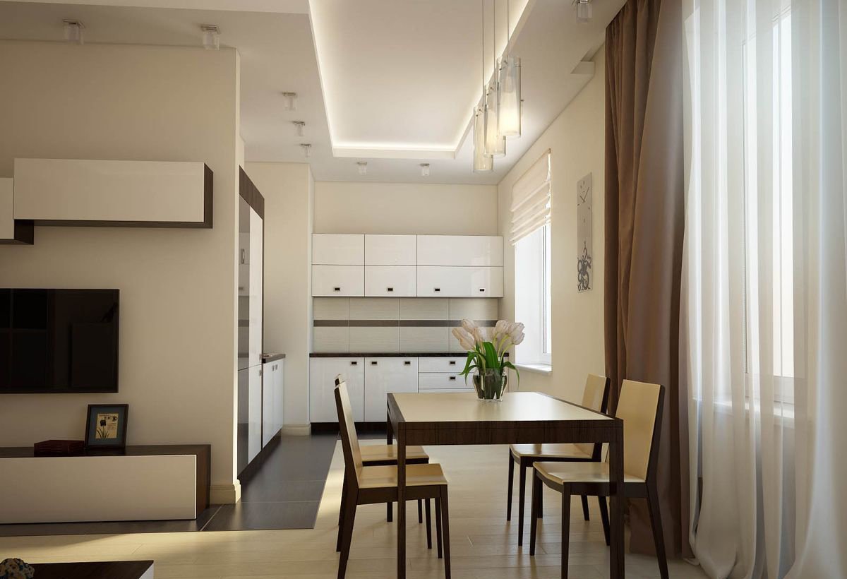 Интерьер кухни в трехкомнатной квартире