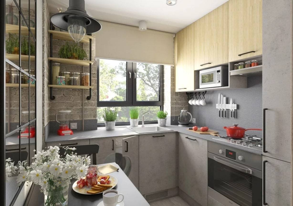 Кухня в хрущевке в стиле лофт 6 кв