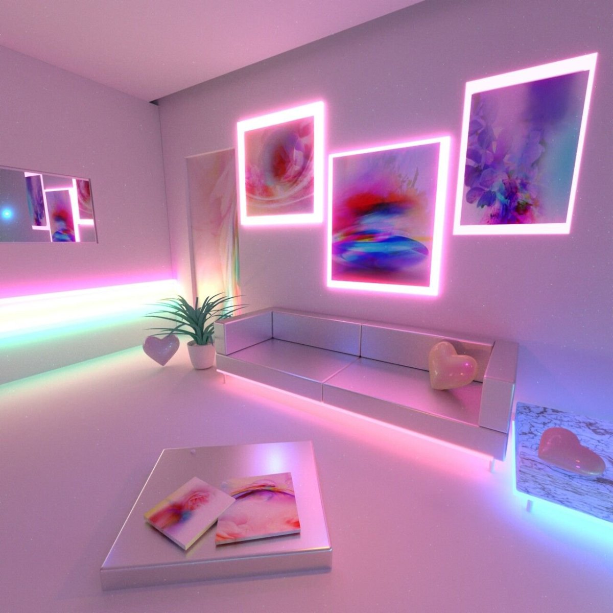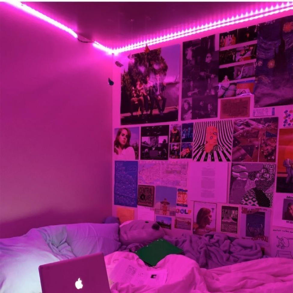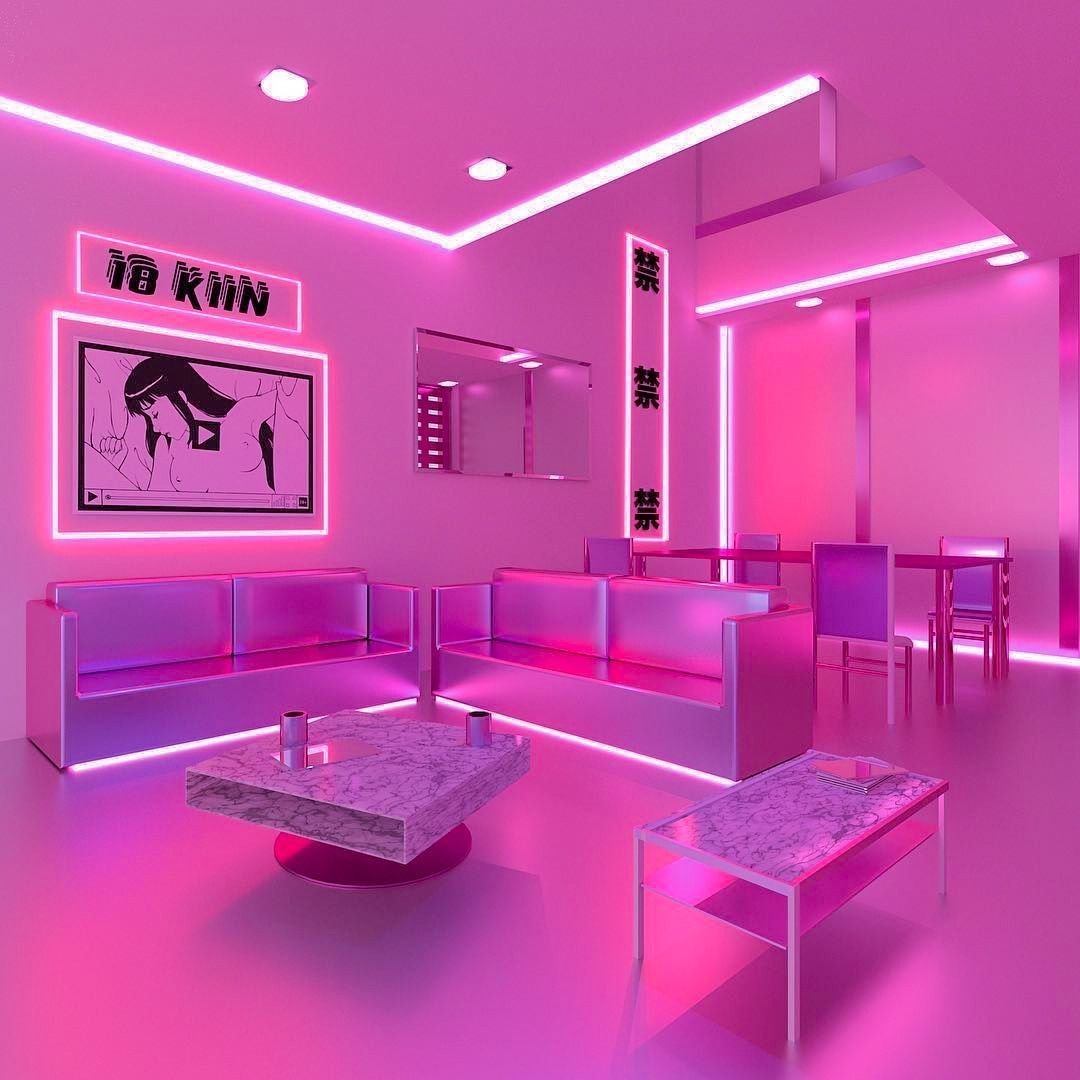 Комната с розовой подсветкой уютная