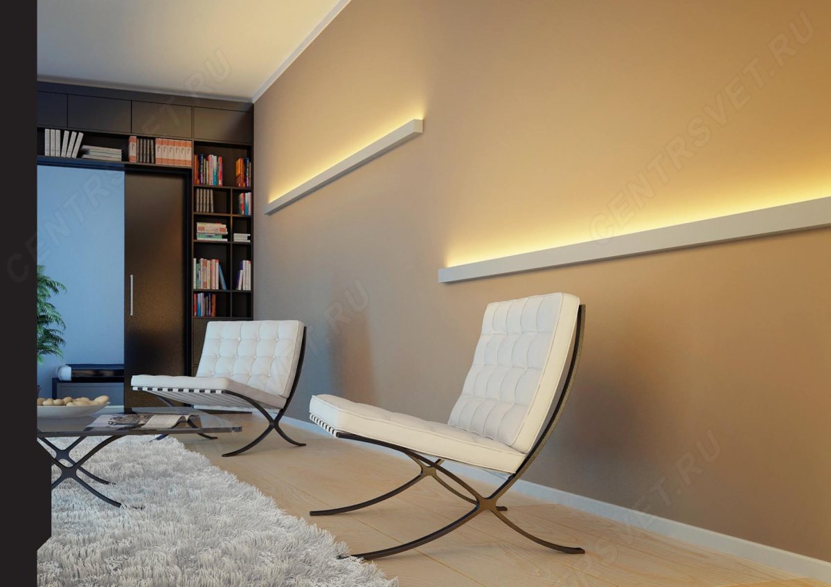 Светодиодная лента на стене в интерьере