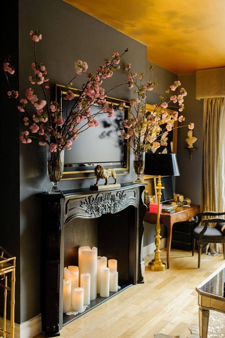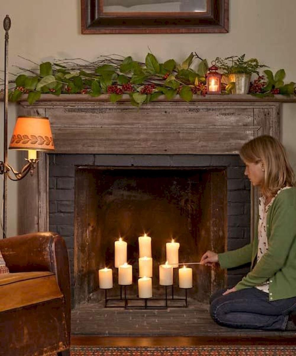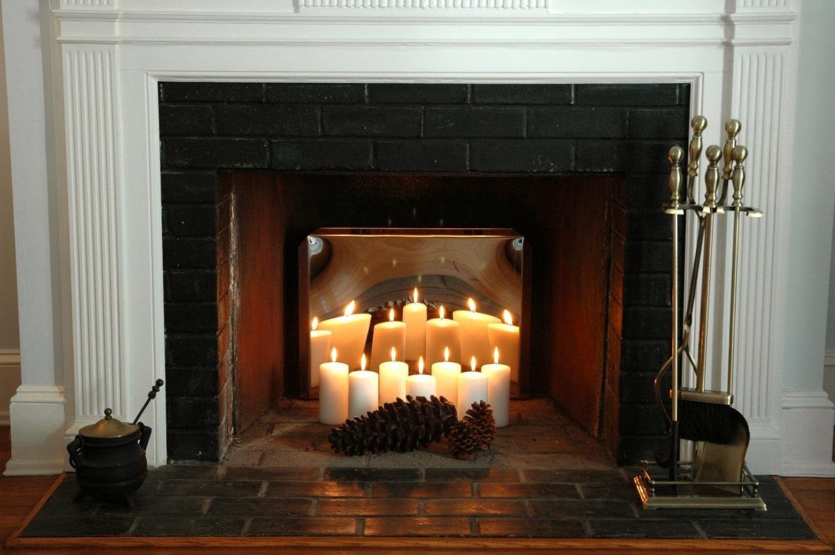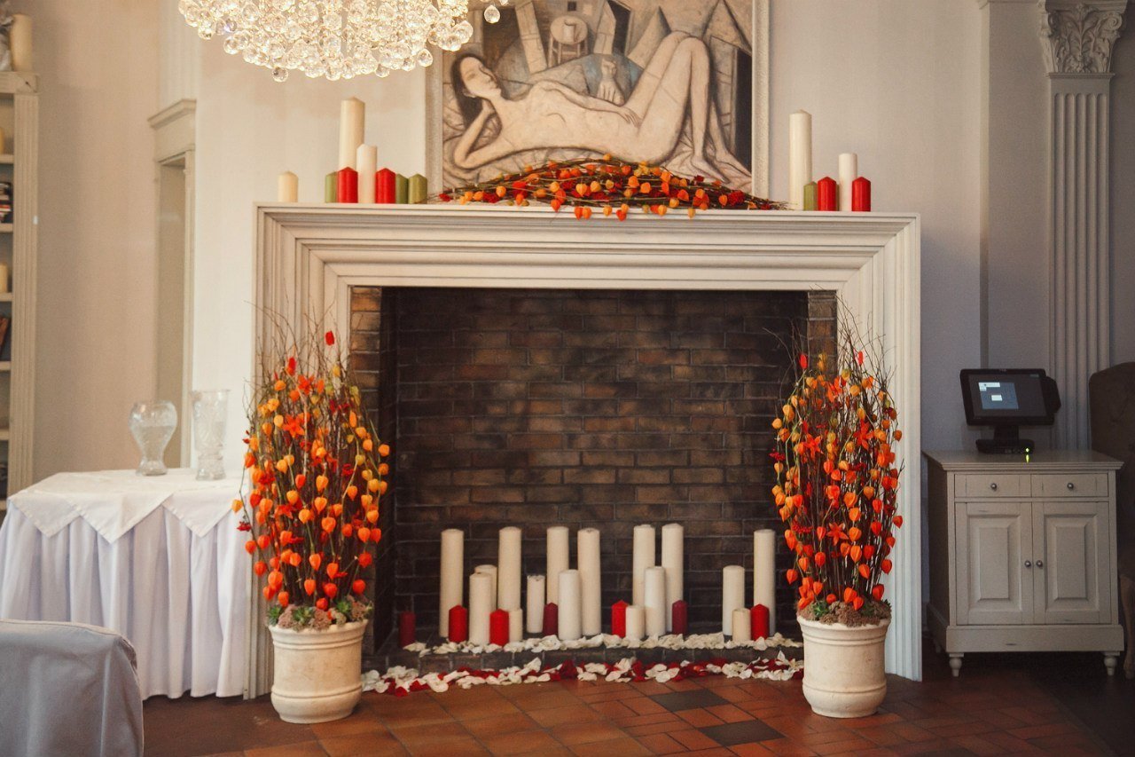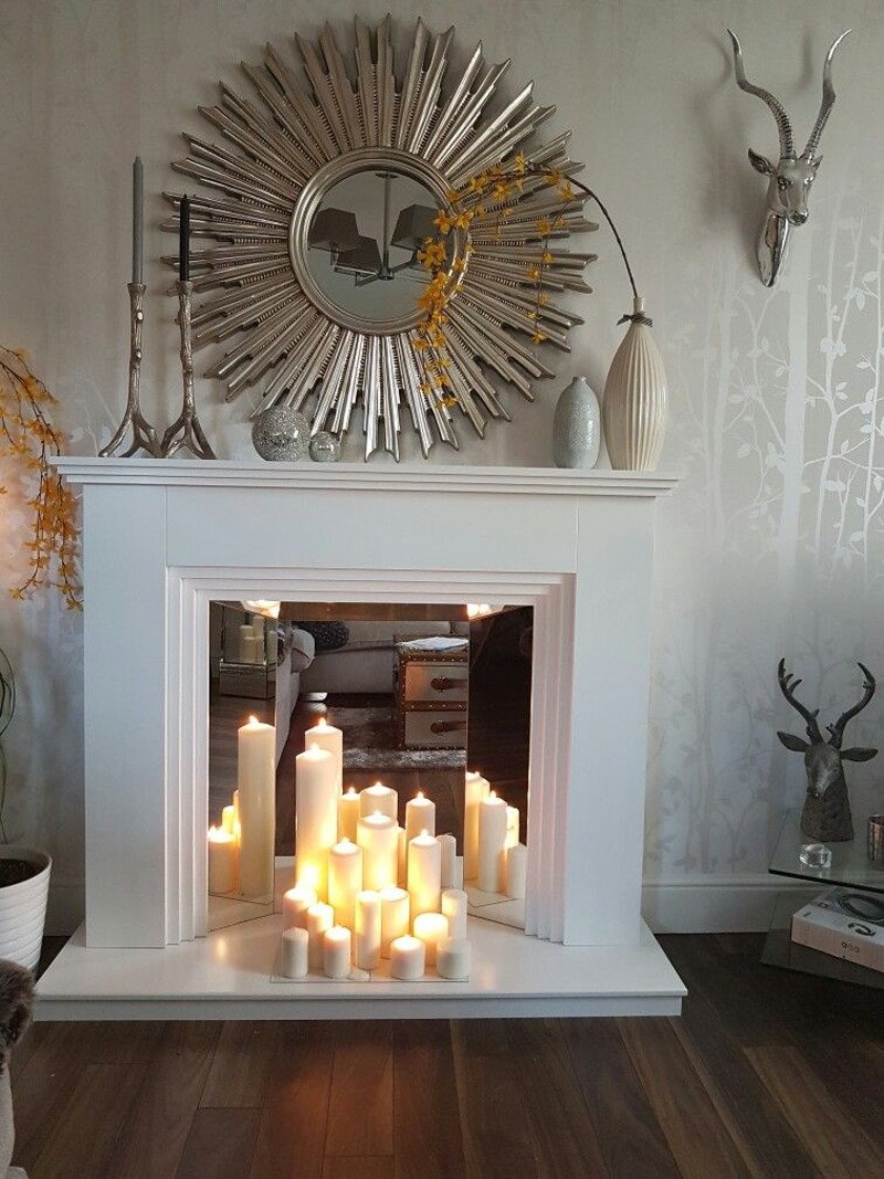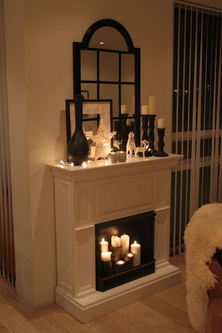 Камин со свечами в интерьере
