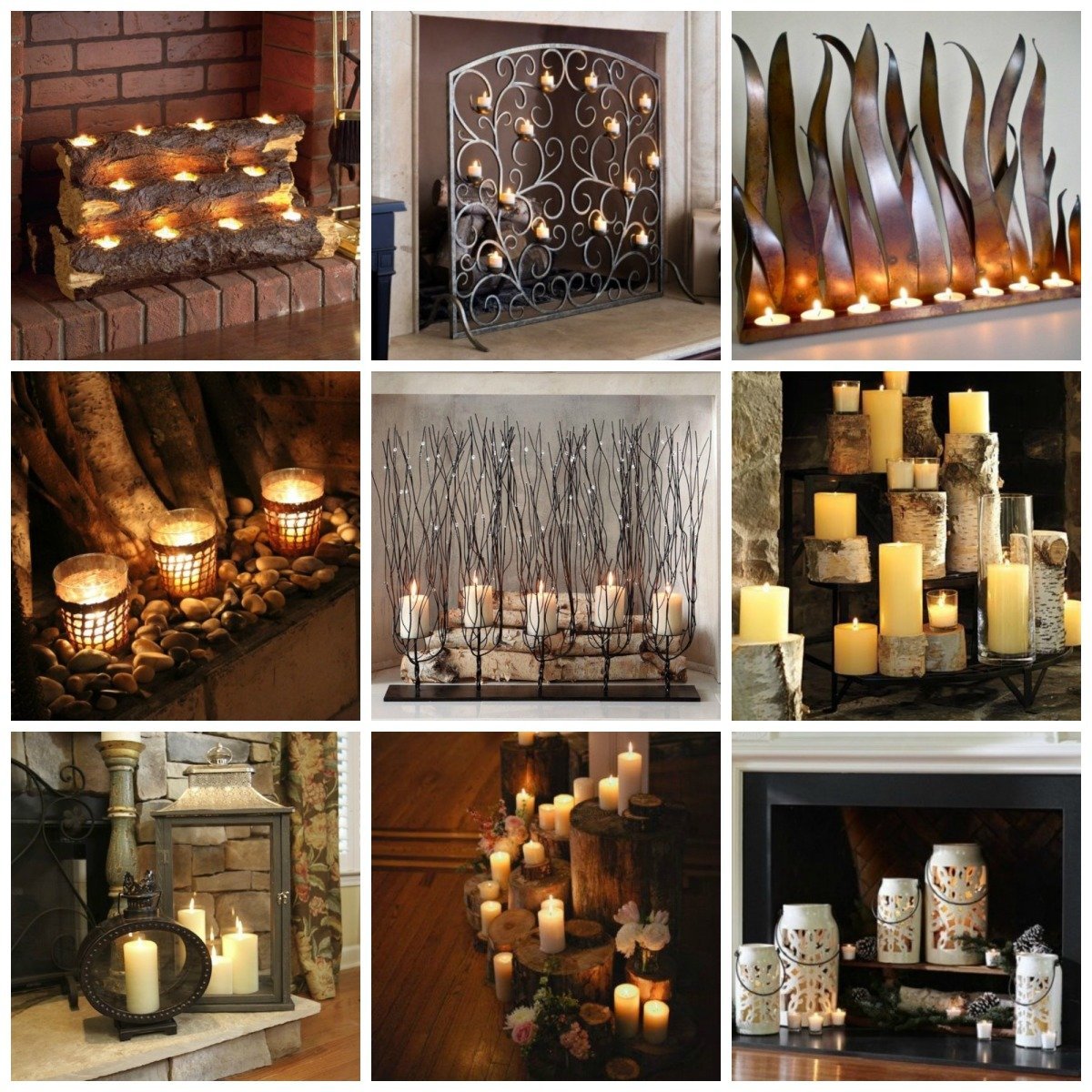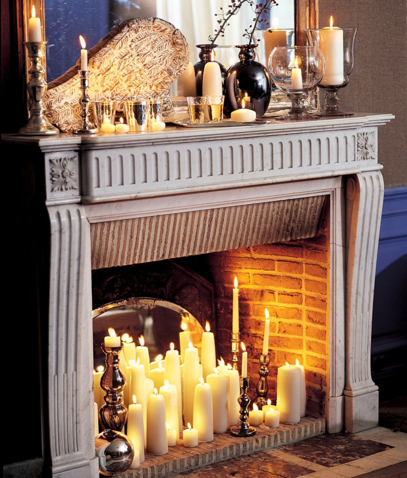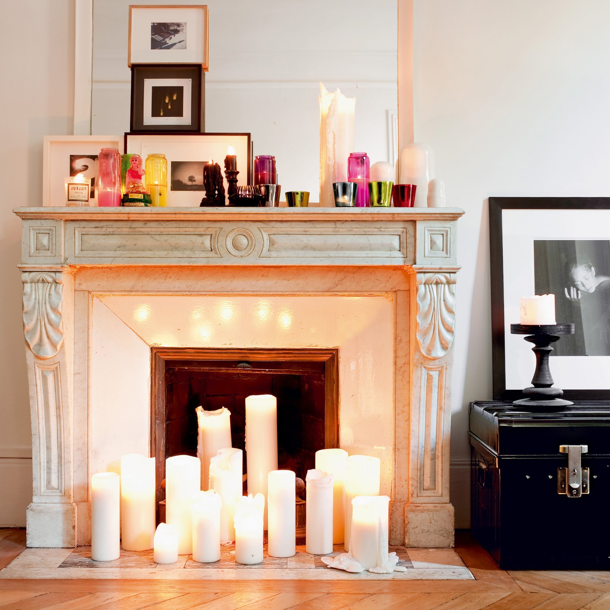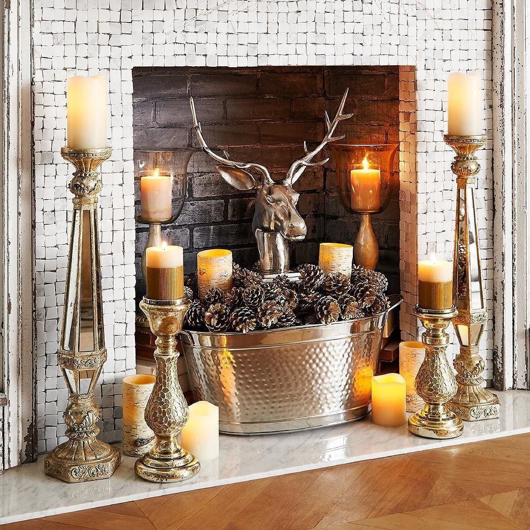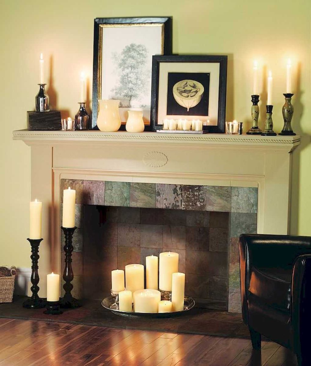 Камин со свечами в интерьере