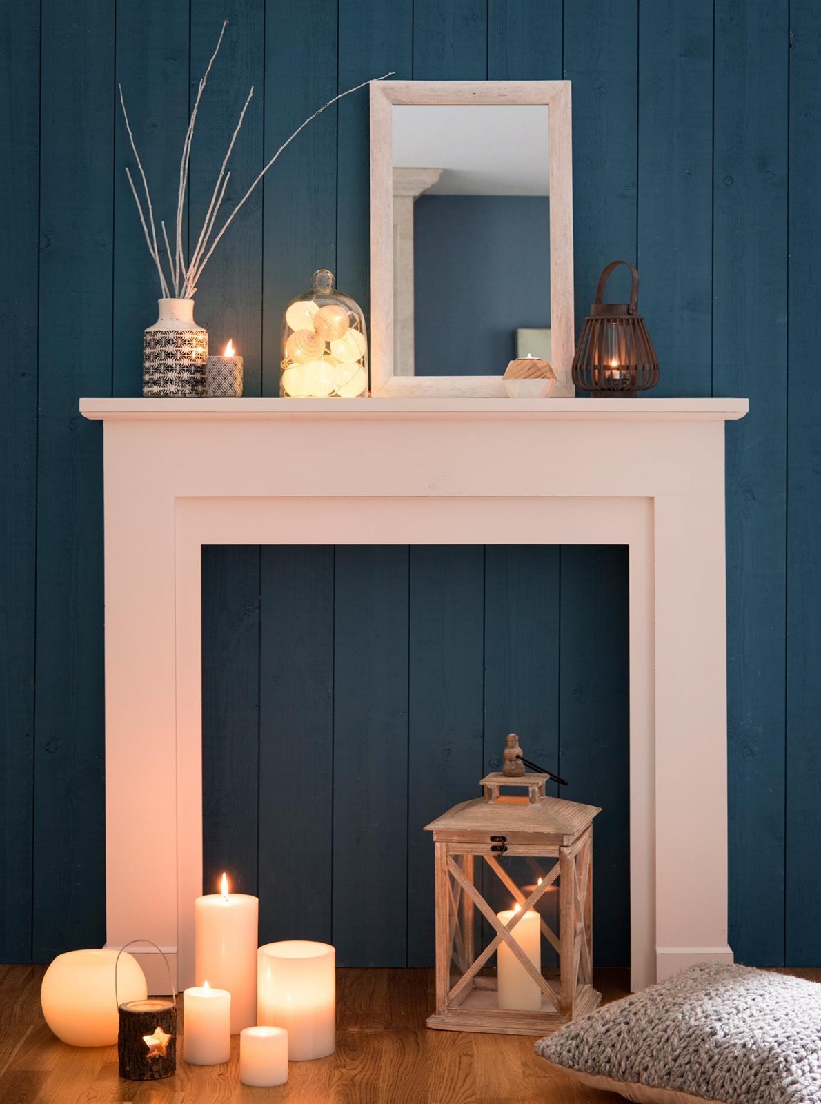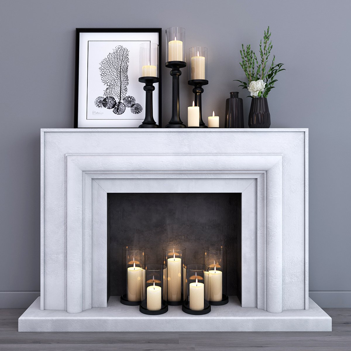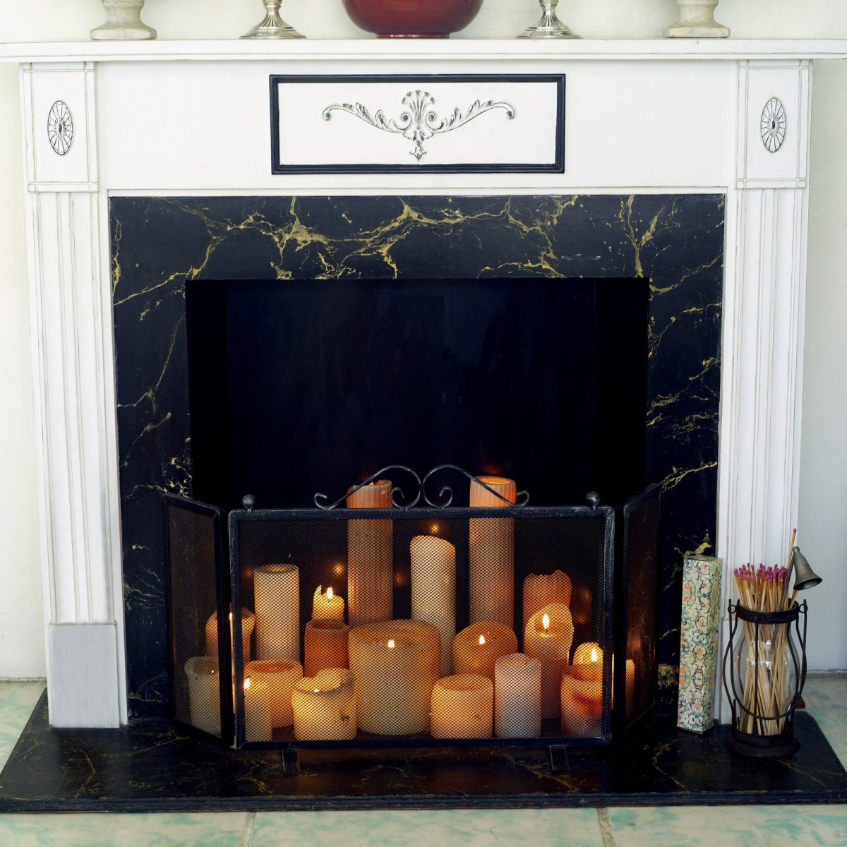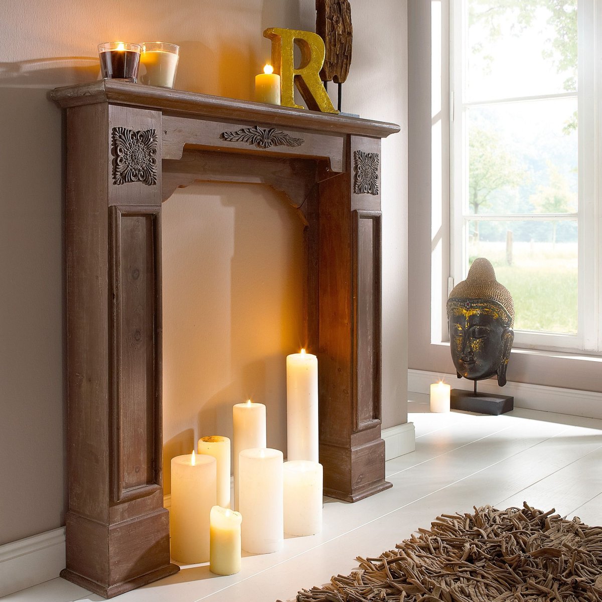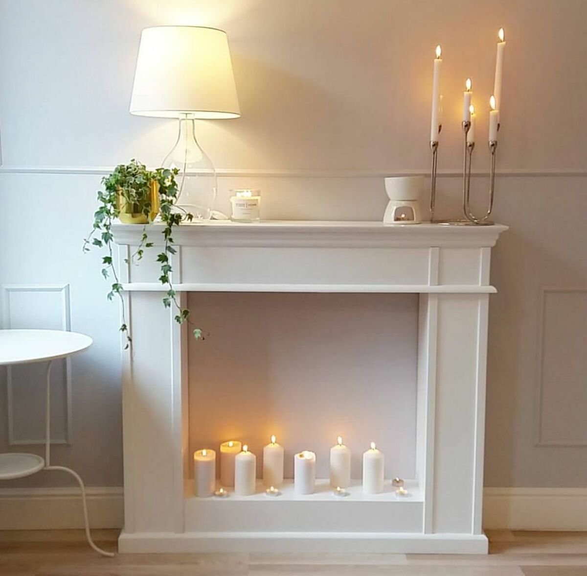 Камин со свечами в интерьере