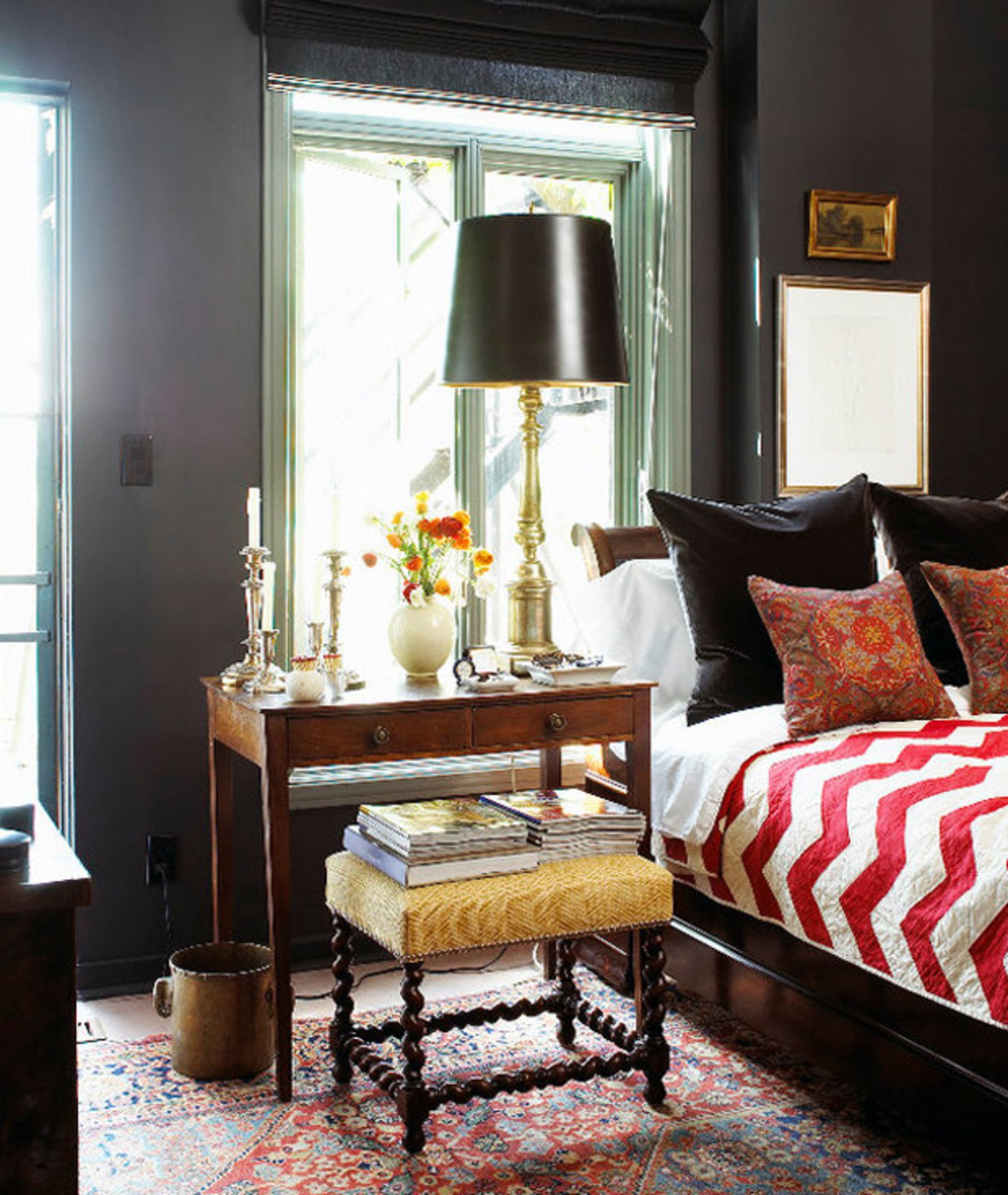 Сара Ричардсон интерьеры спальни с темной мебелью