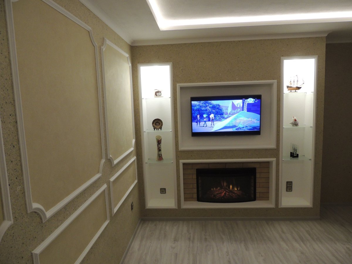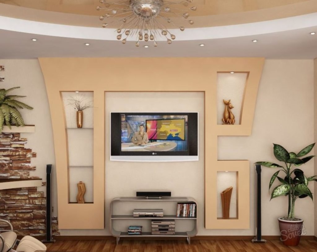 Гипсокартон под телевизор на стене