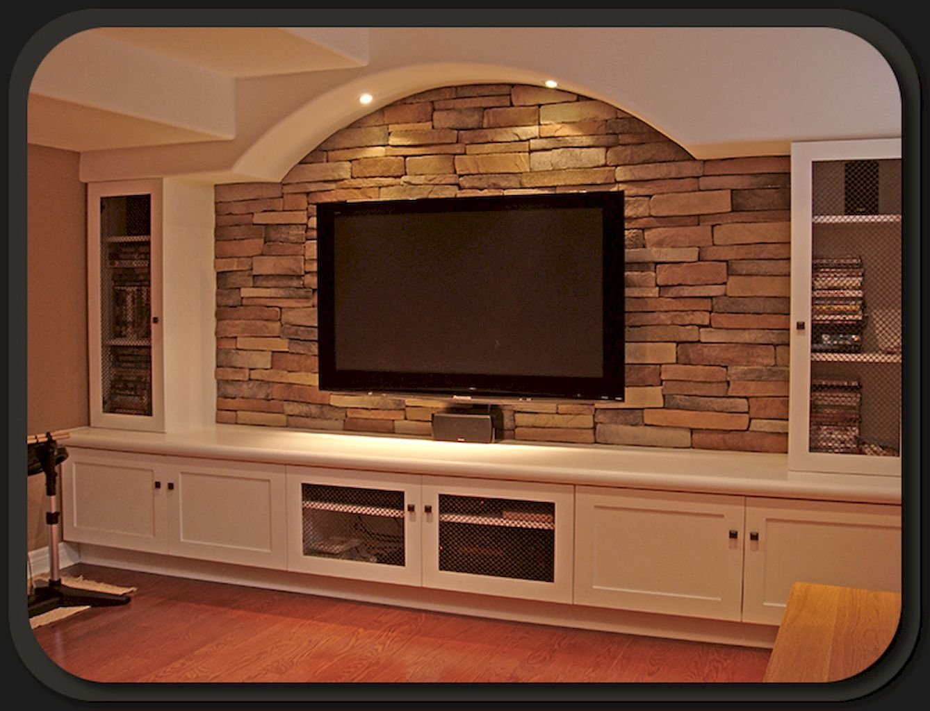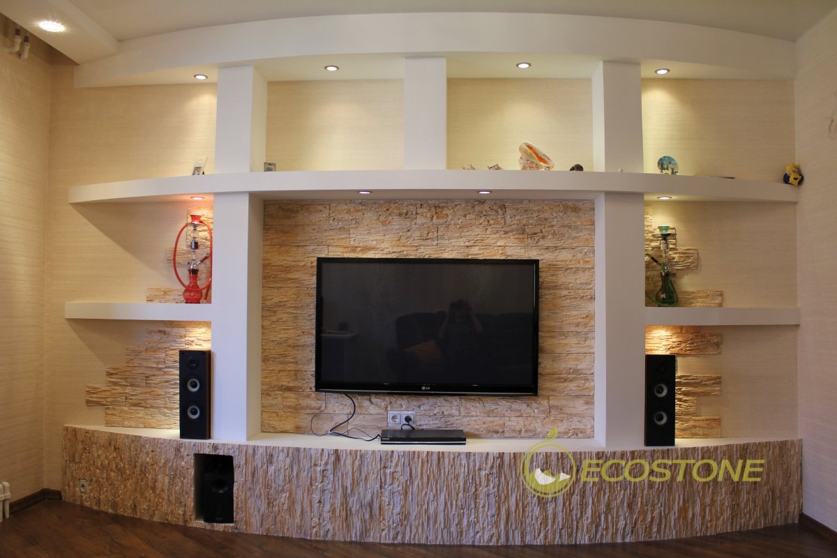 Ниша под телевизор с декоративным камнем
