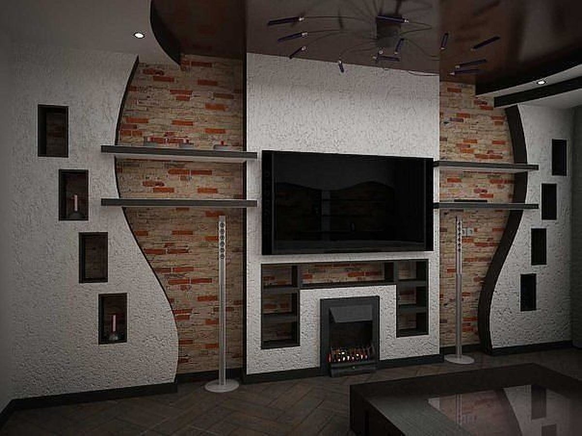 Дизайн стены под телевизор из гипсокартона