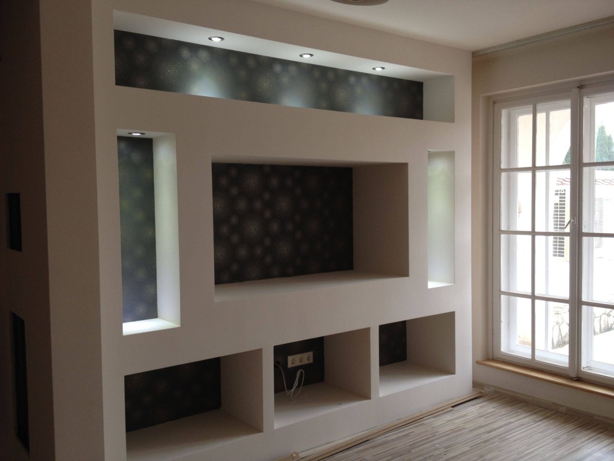 Стенка из гипсокартона под телевизор