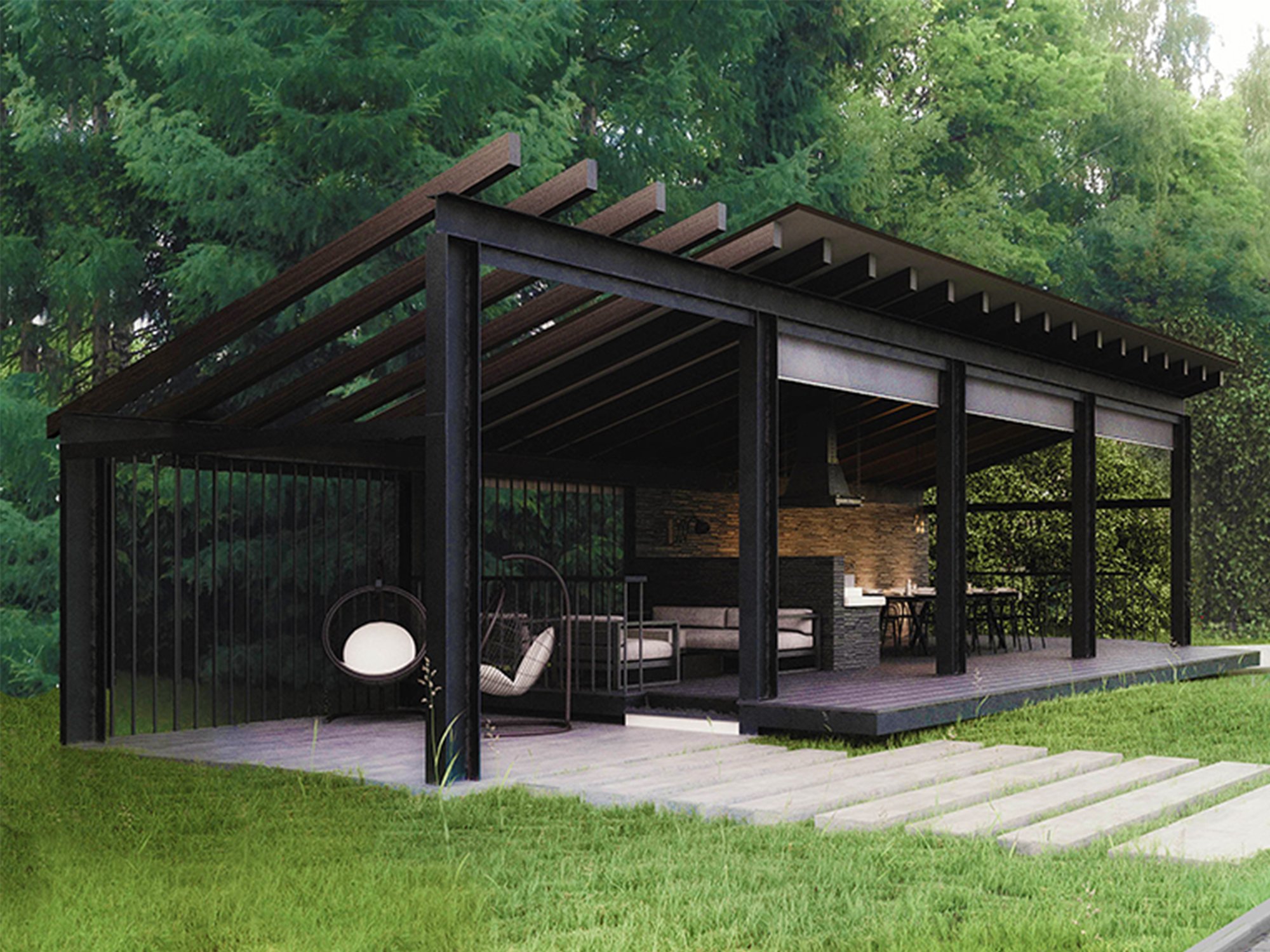 Современная беседка с барбекю