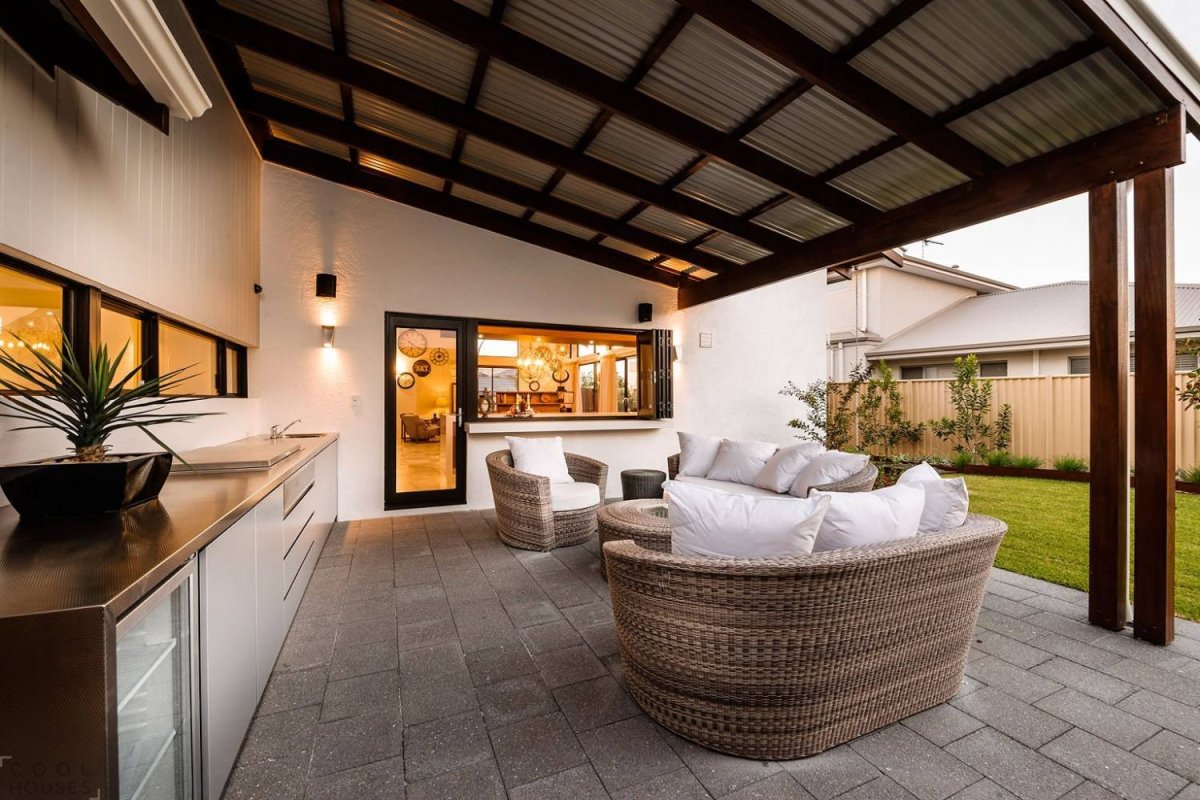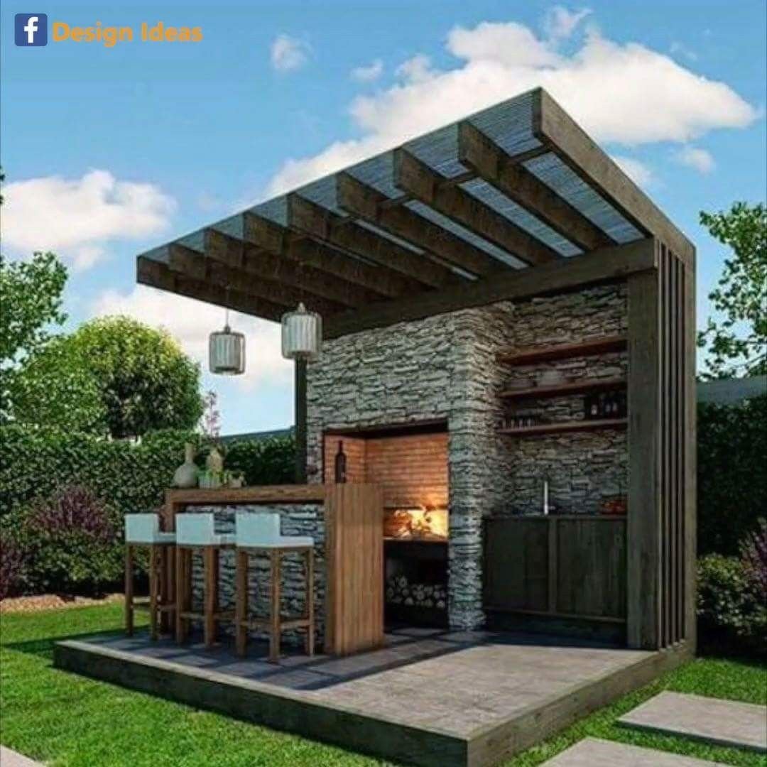 Зона барбекю с навесом современная