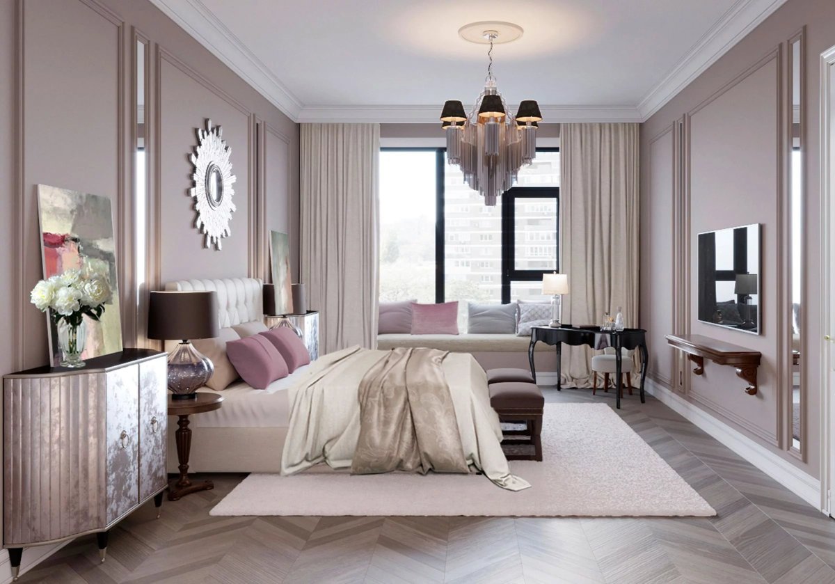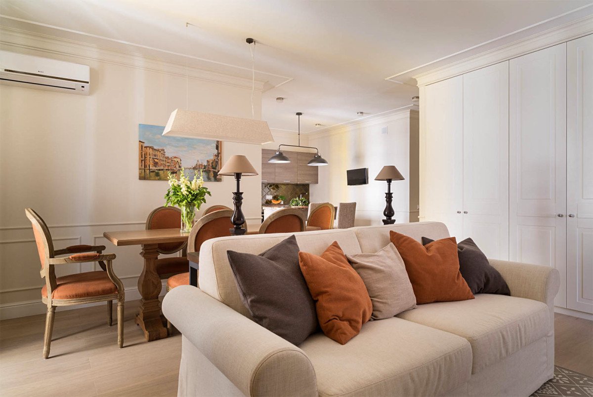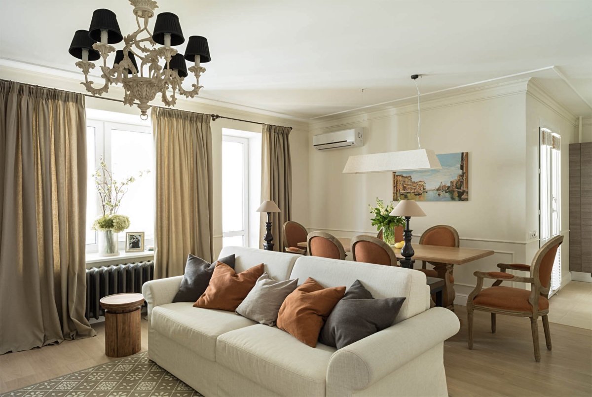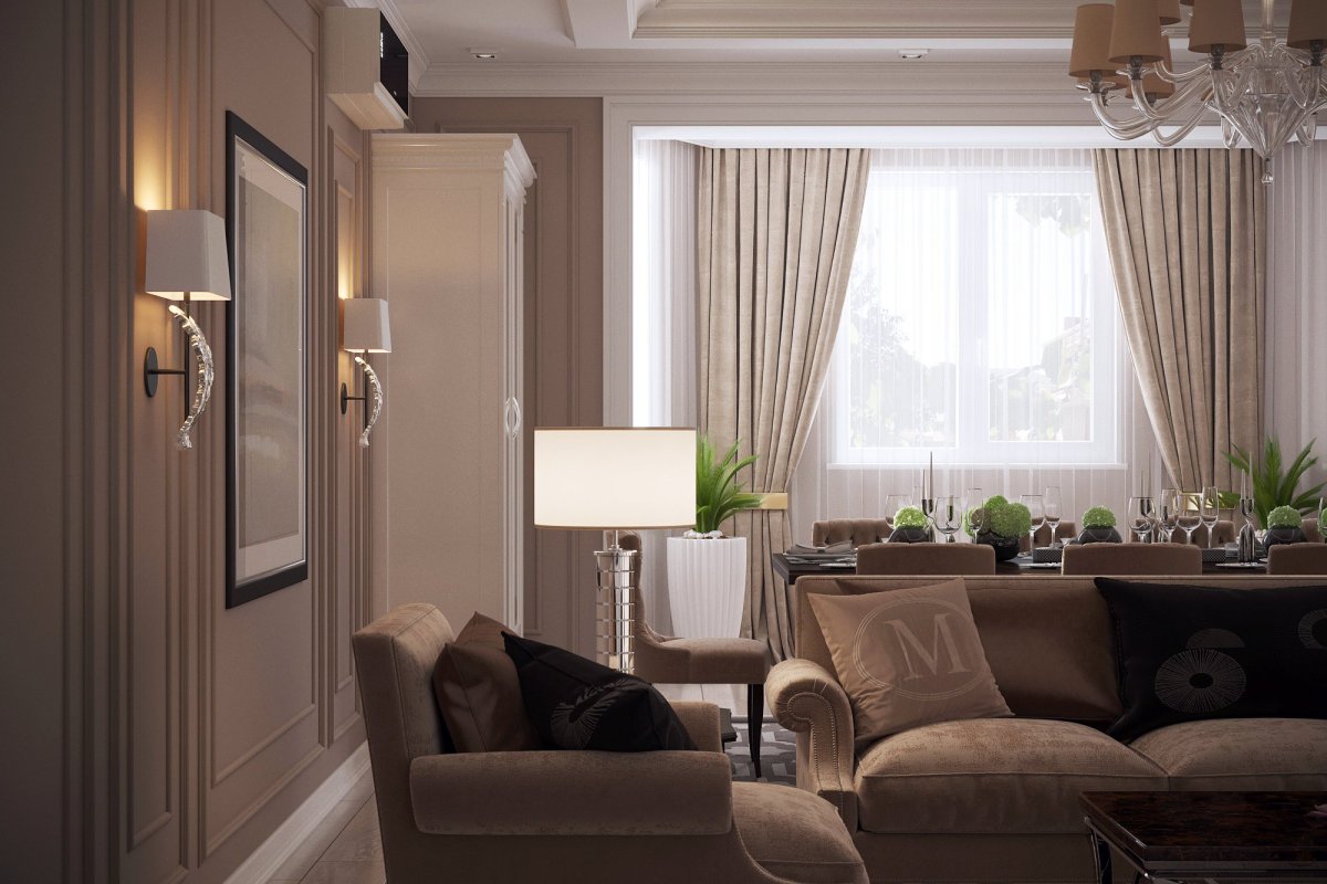 Линкруста в интерьере гостиной в стиле Неоклассика