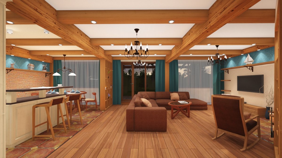 Отделка кухни гостиной в каркасном доме
