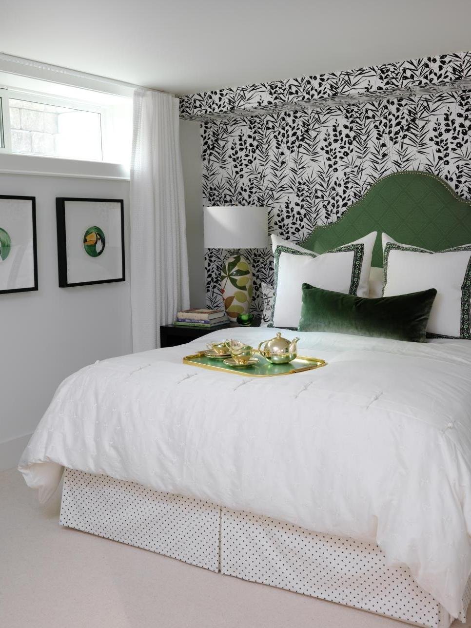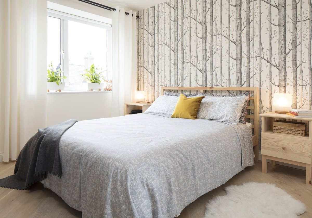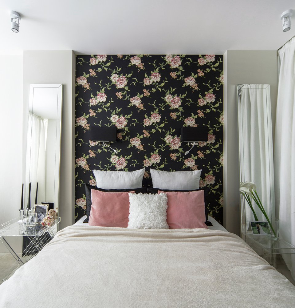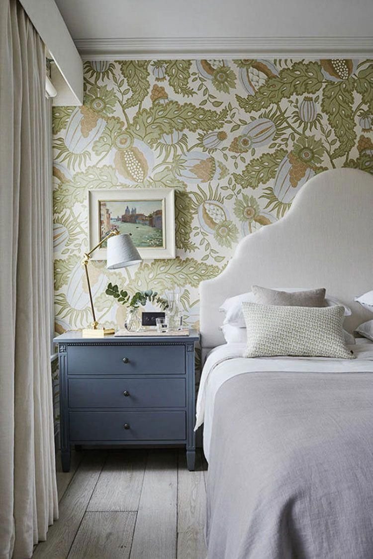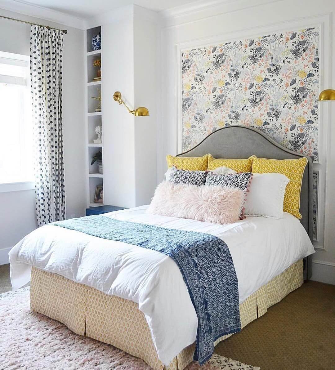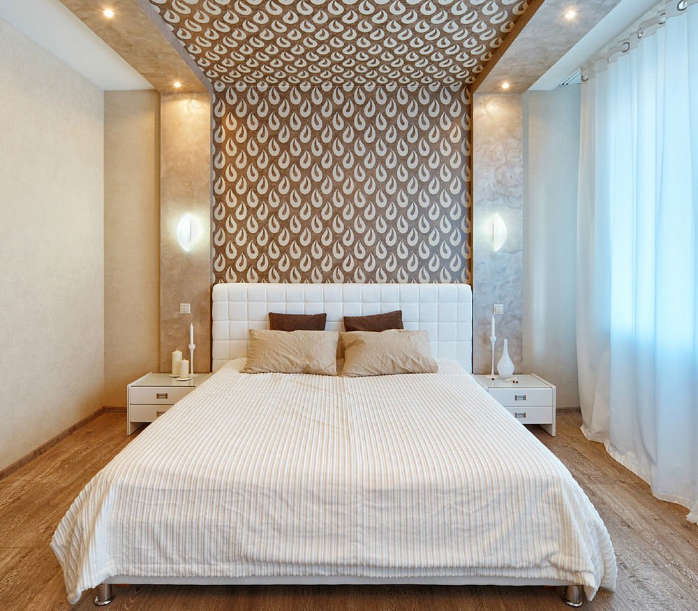 Обои в изголовье кровати в спальне