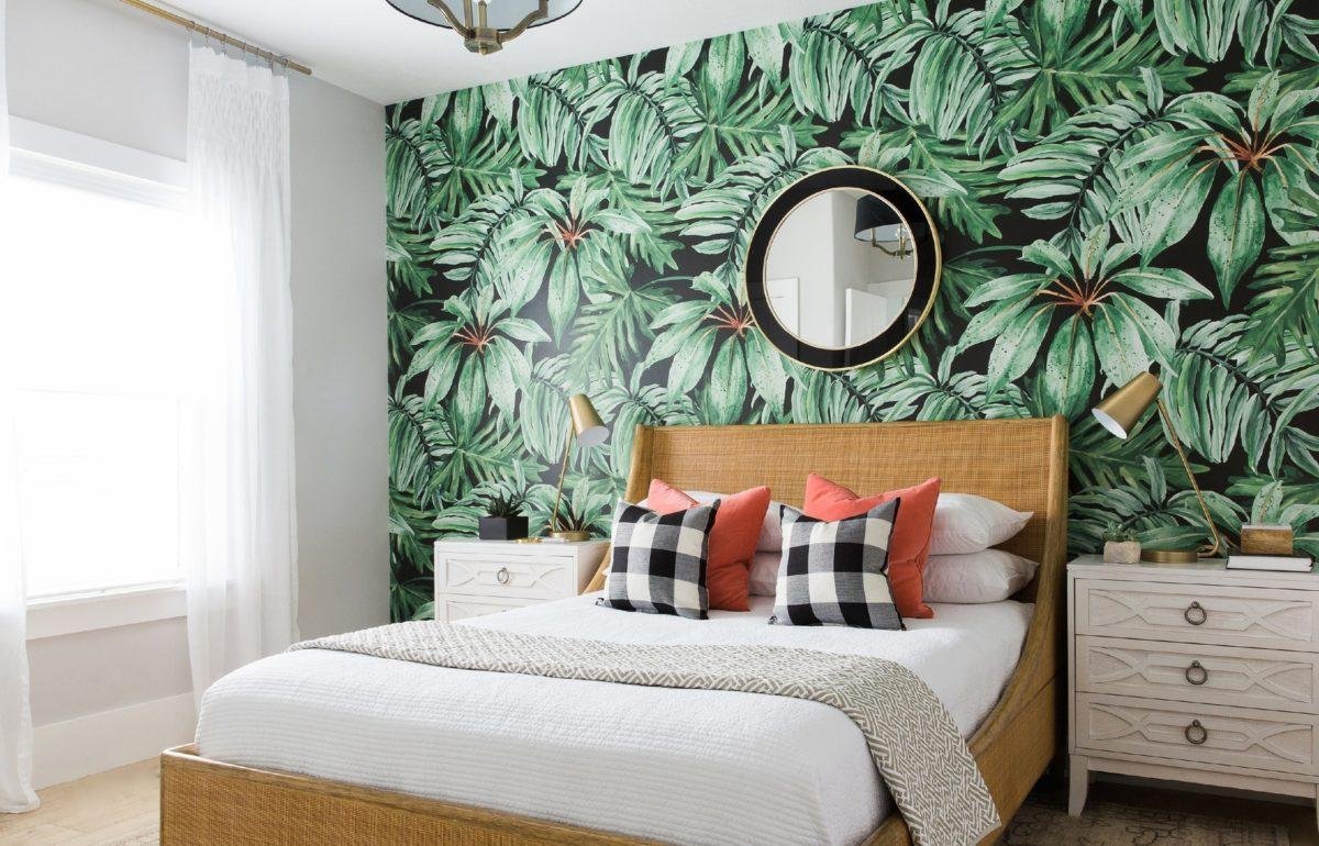 Акцентная стена в спальне обои