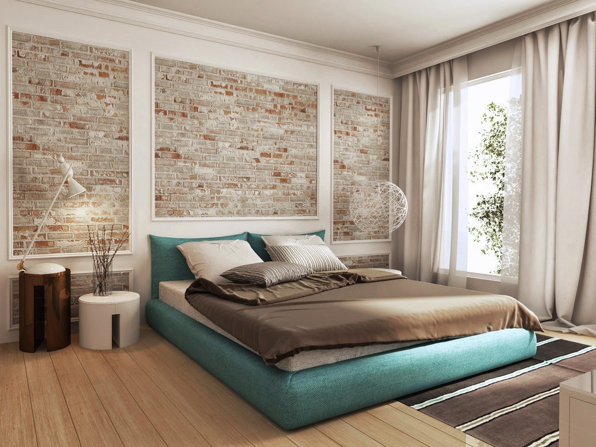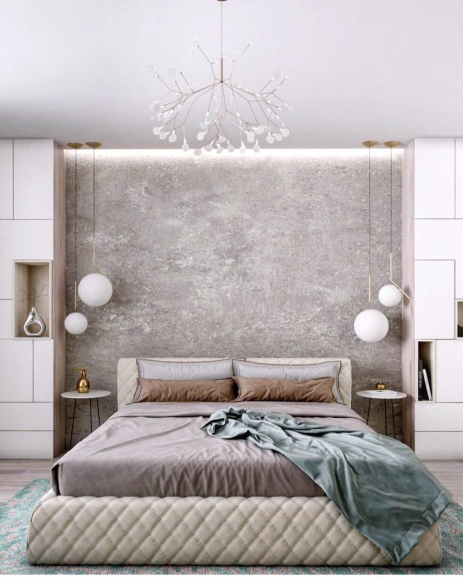 Спальня акцентная стена у кровати