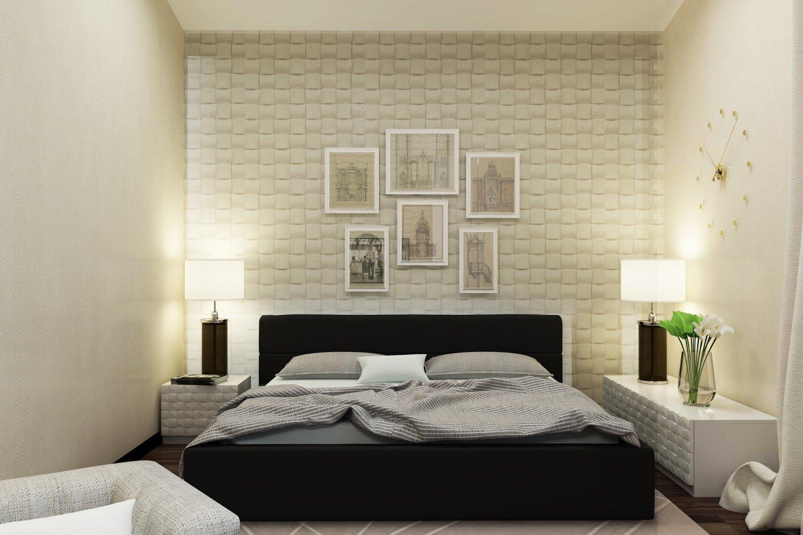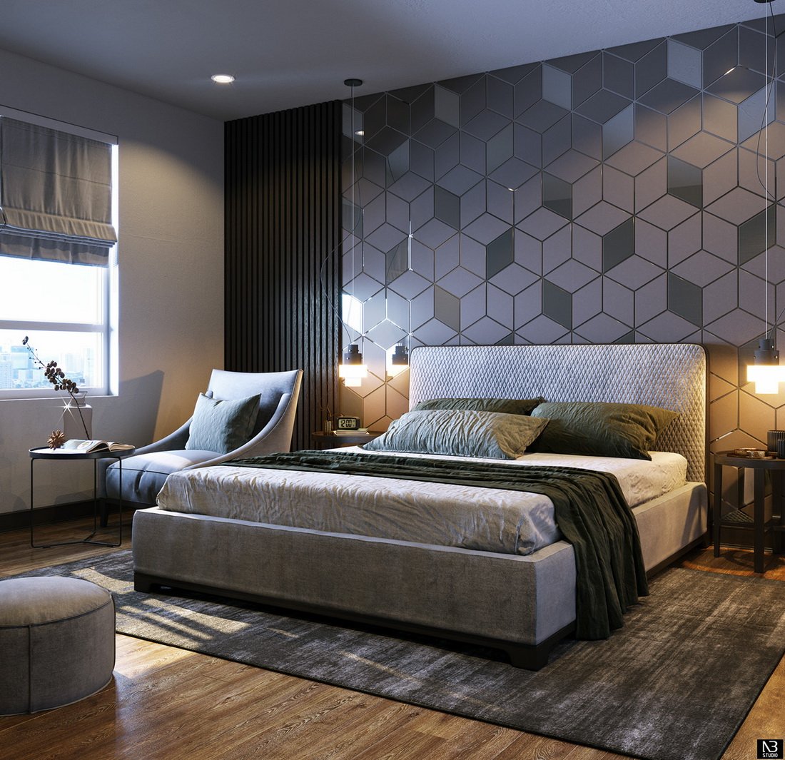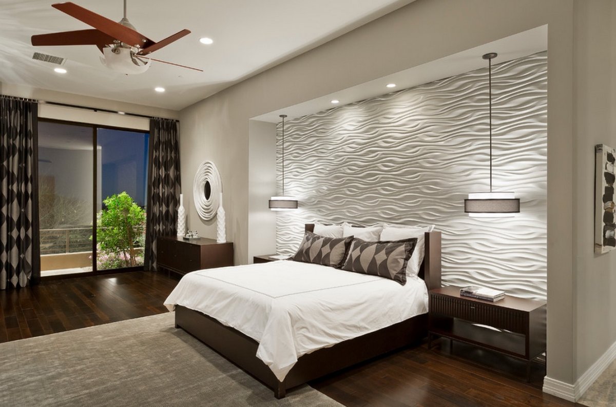 Современная отделка стен в спальне