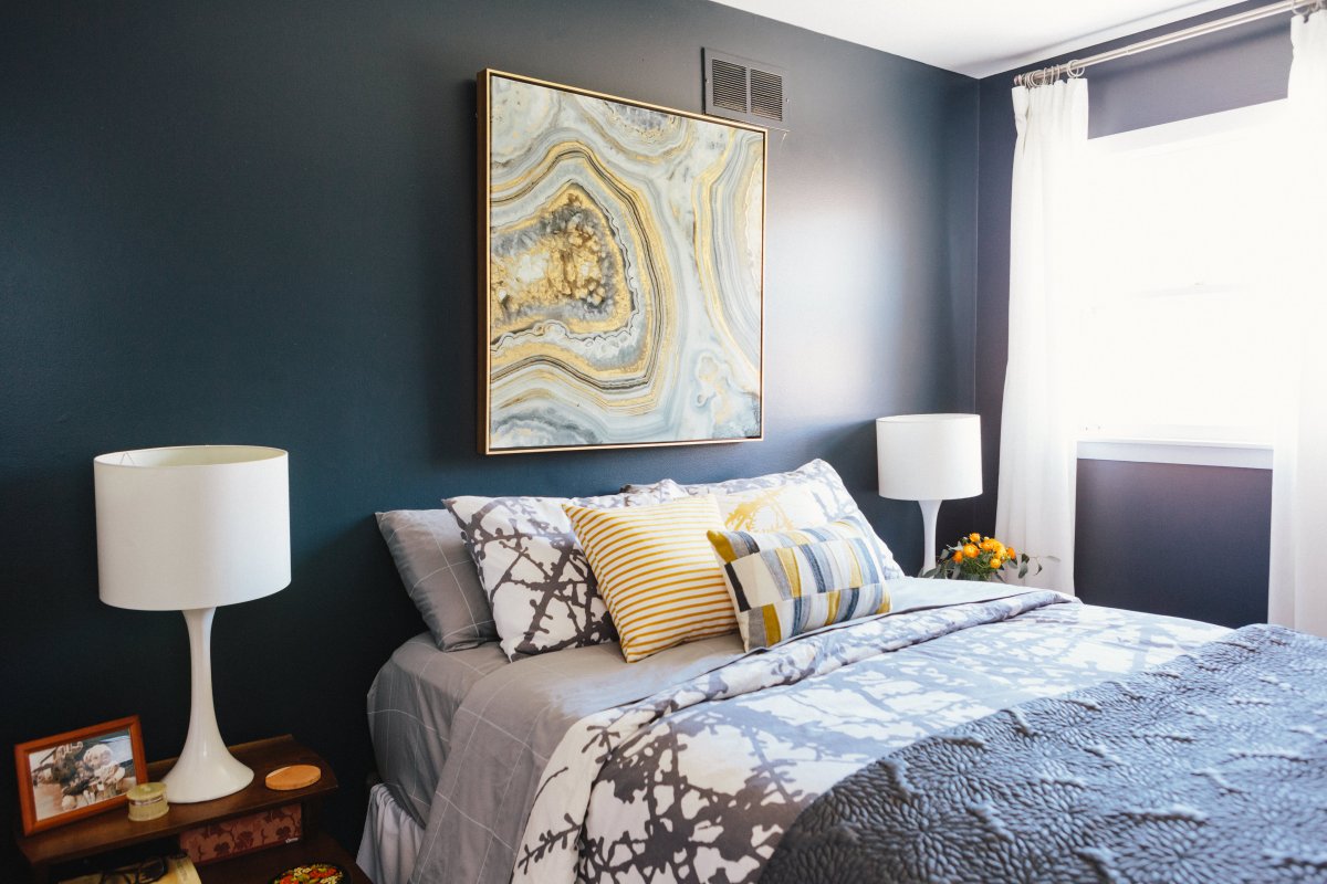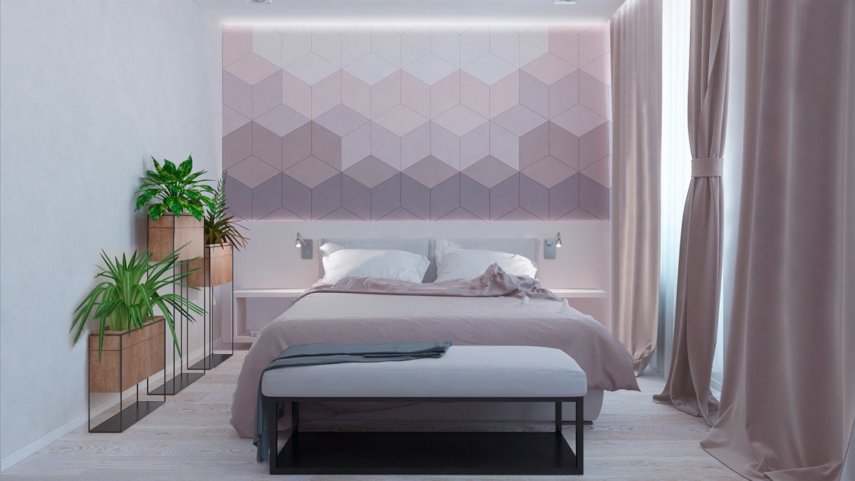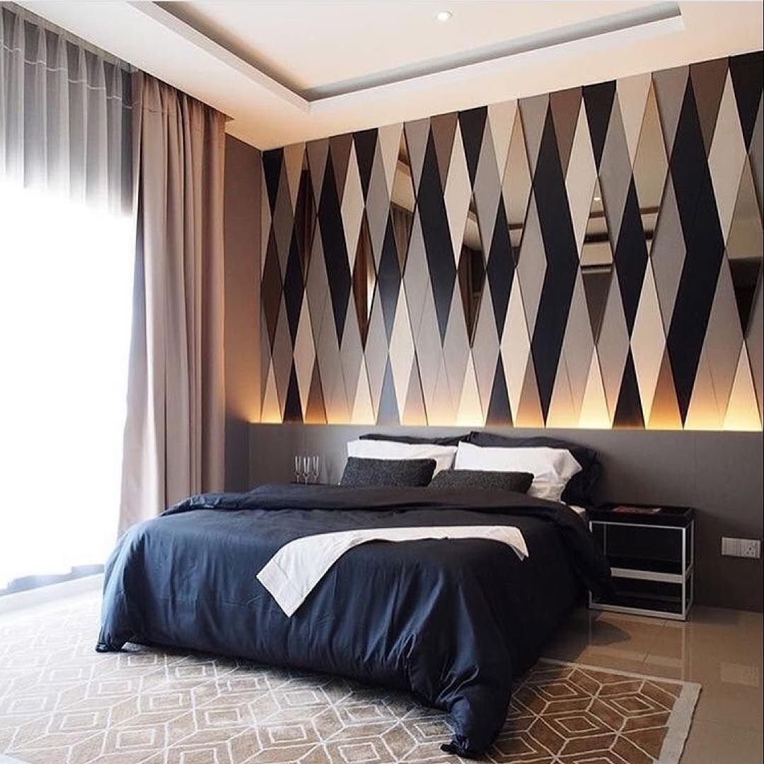 Акцентная стена в спальне изголовье кровати