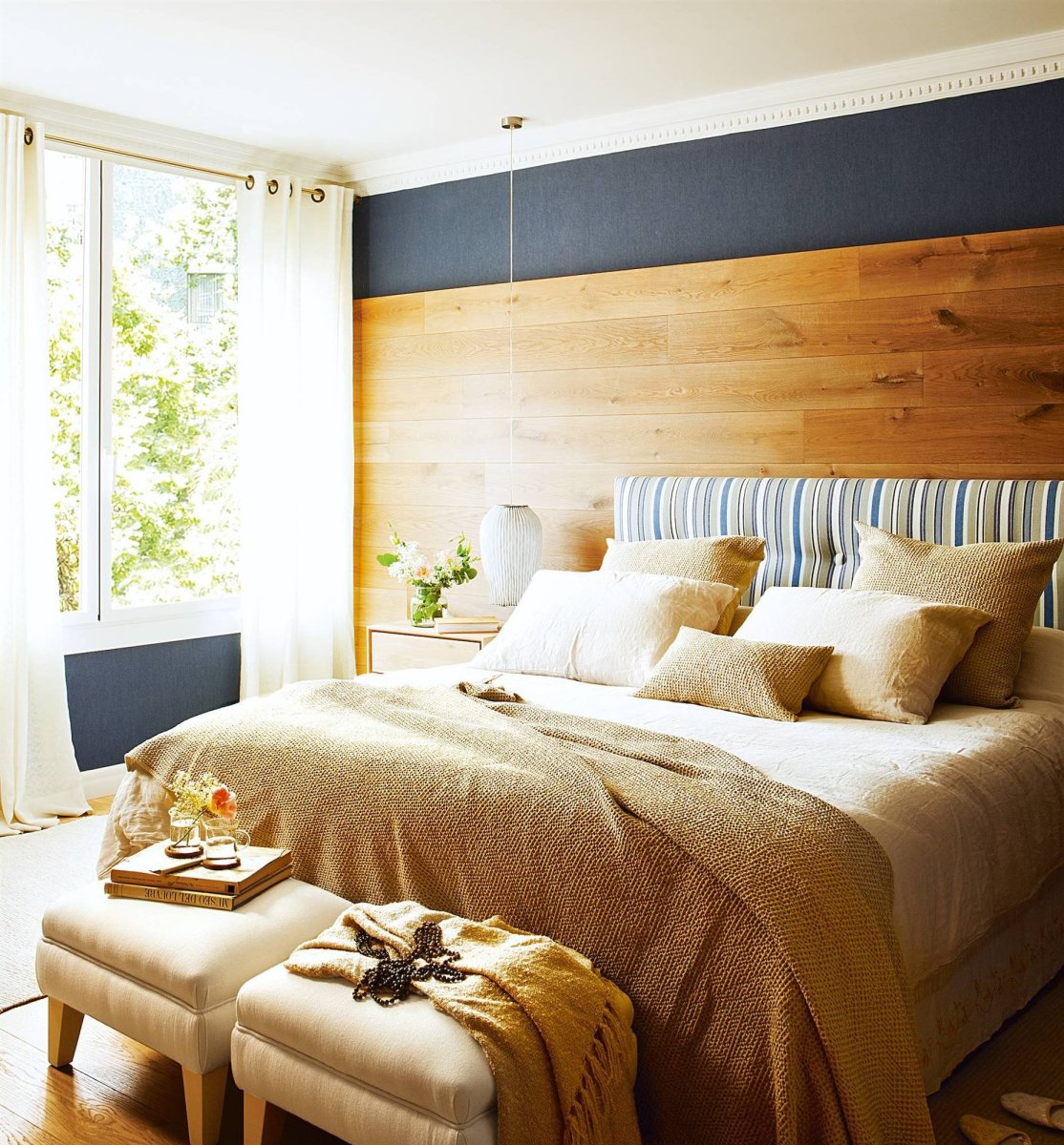 Отделка стены за изголовьем кровати