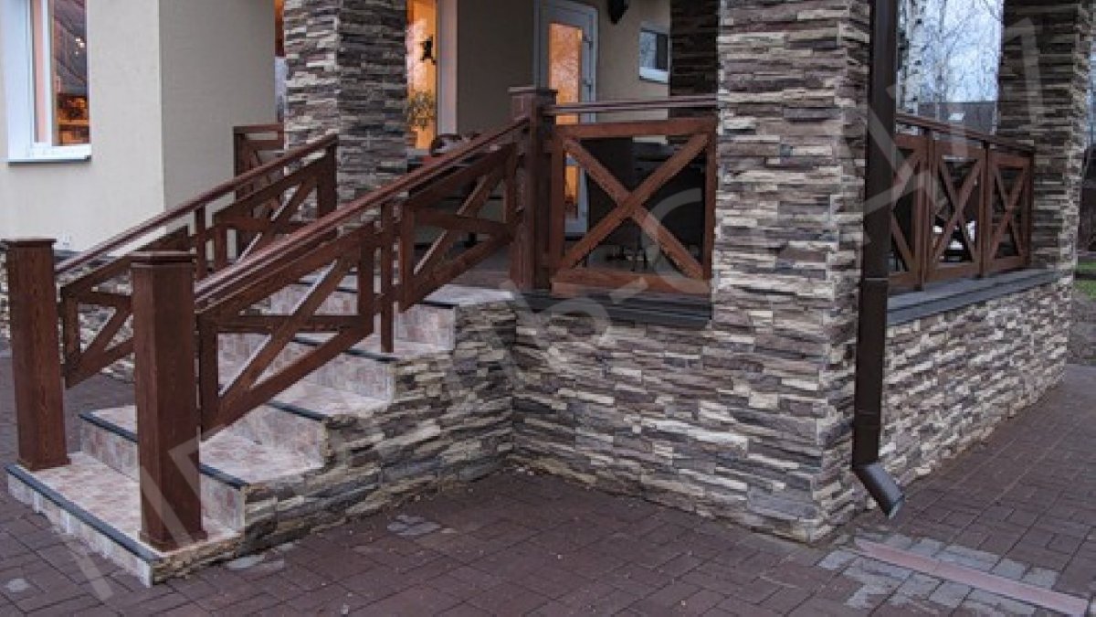 Ограждение крыльца с камнем