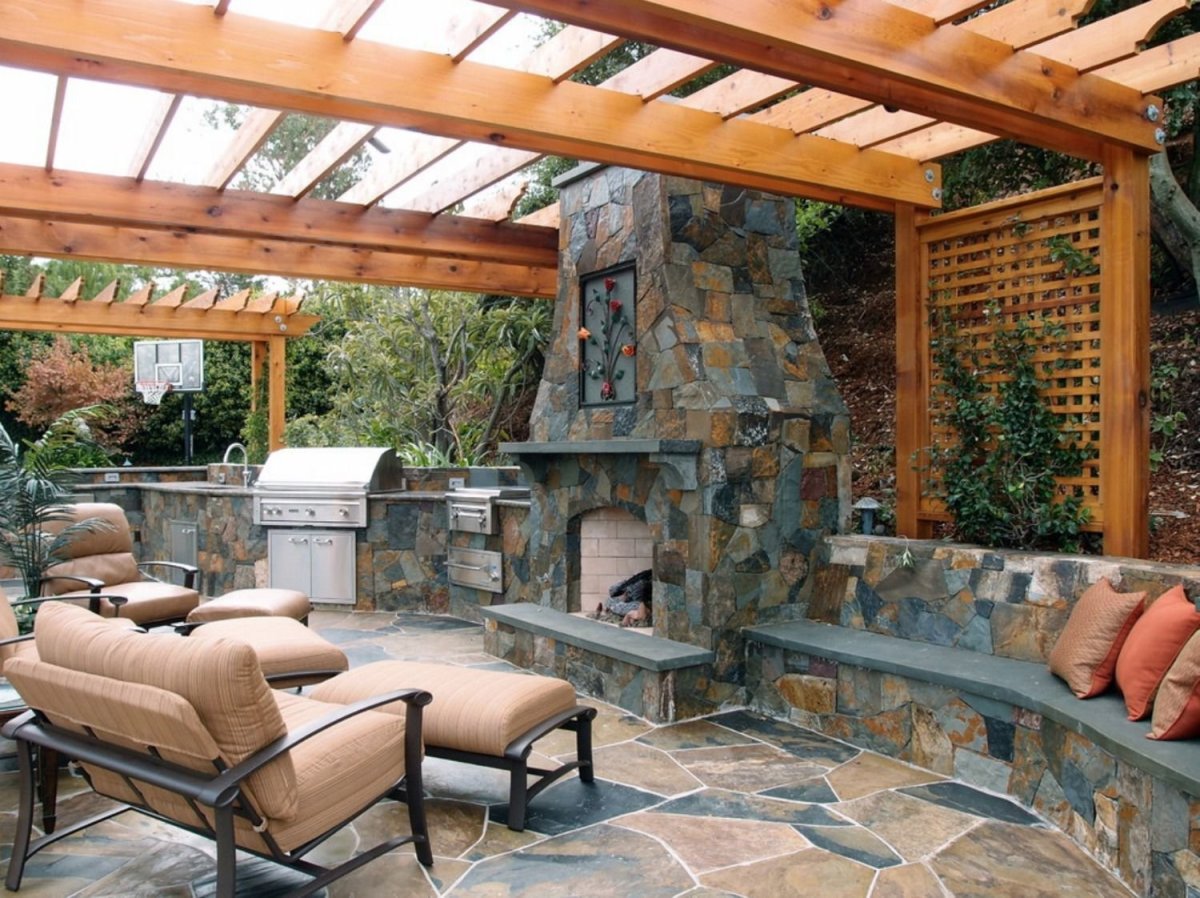 Пергола патио с мангалом