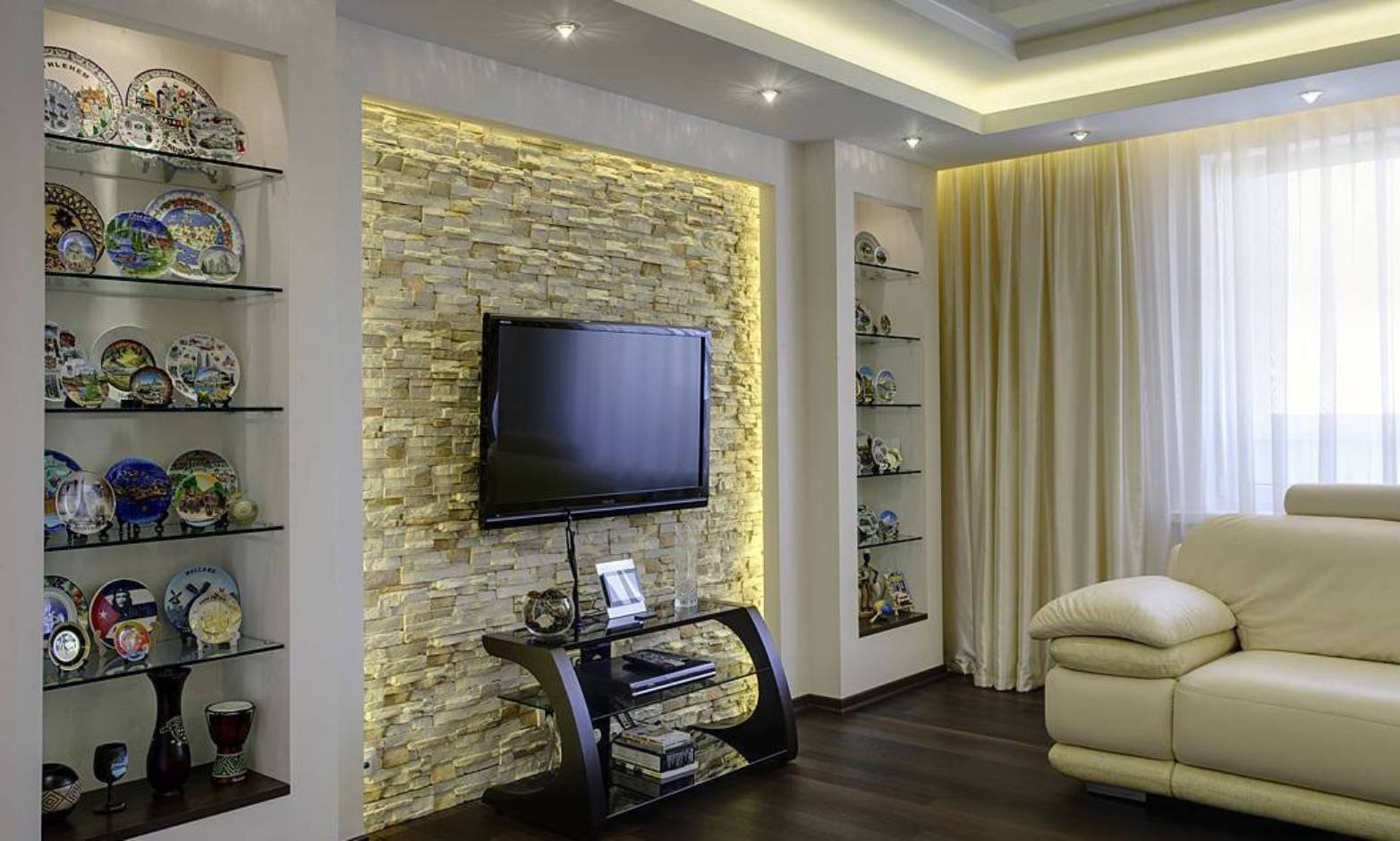 Стенка из гипсокартона в гостиной