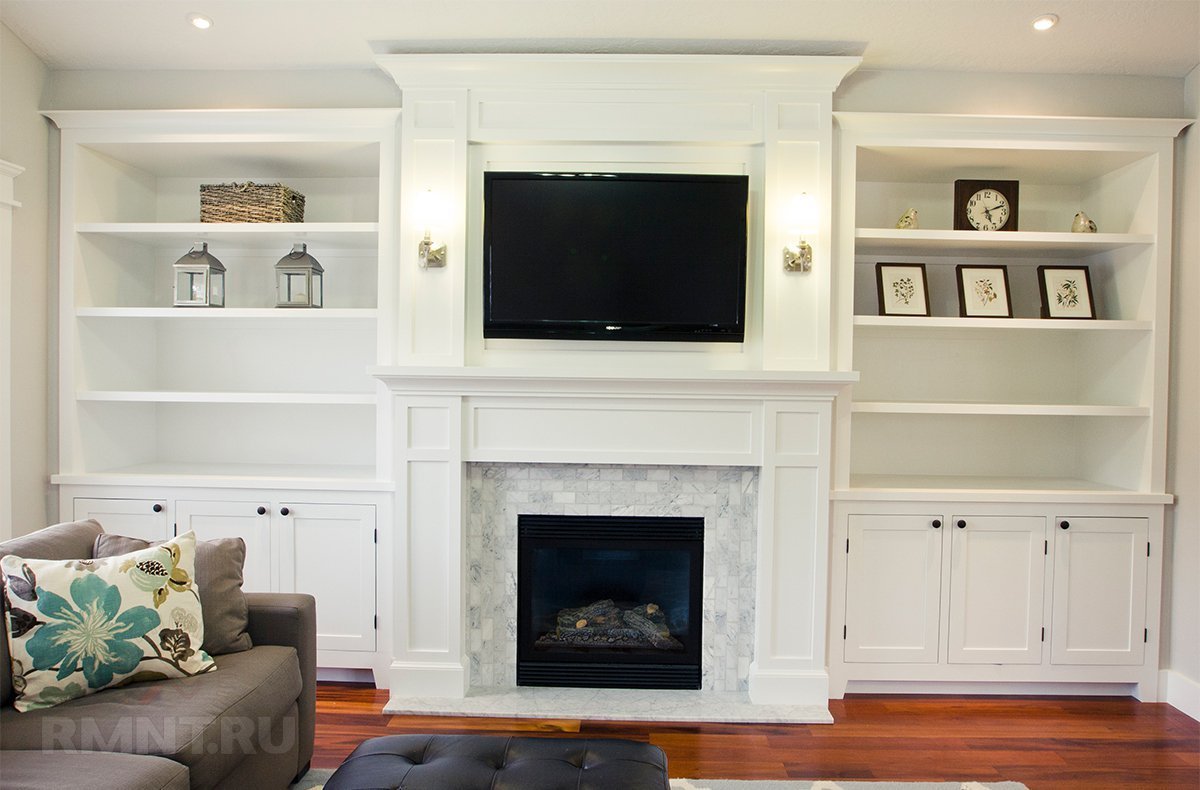 Камин встроенный в полку под телевизор