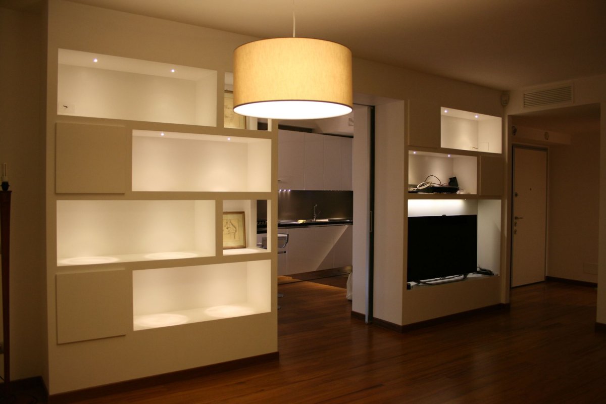 Стенка из гипсокартона в зале