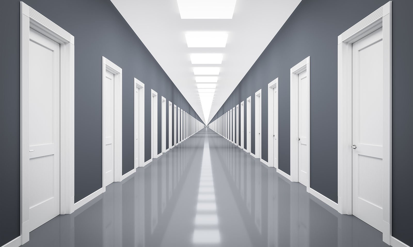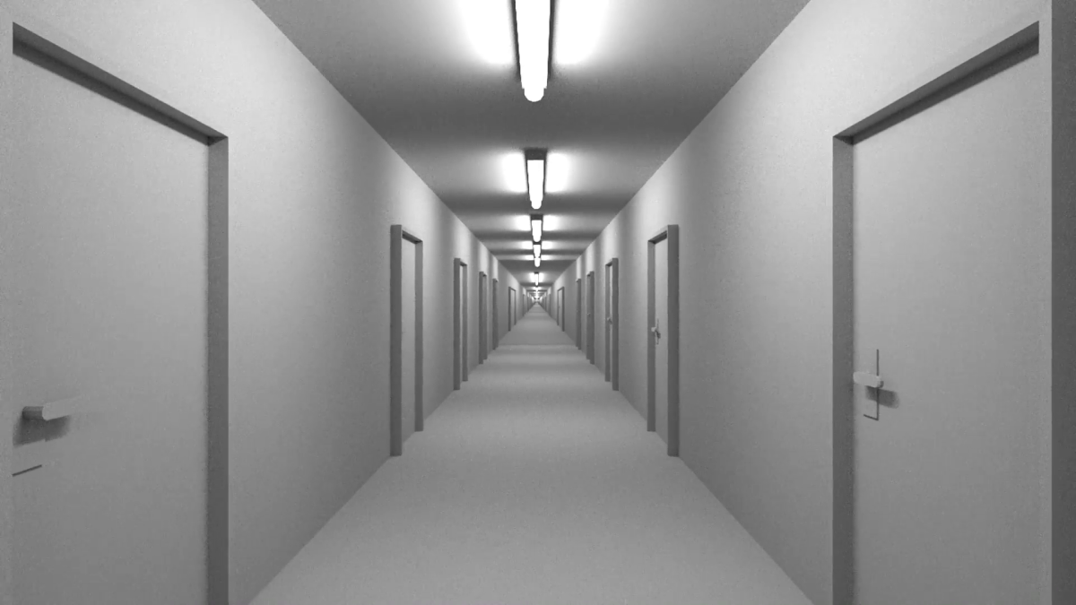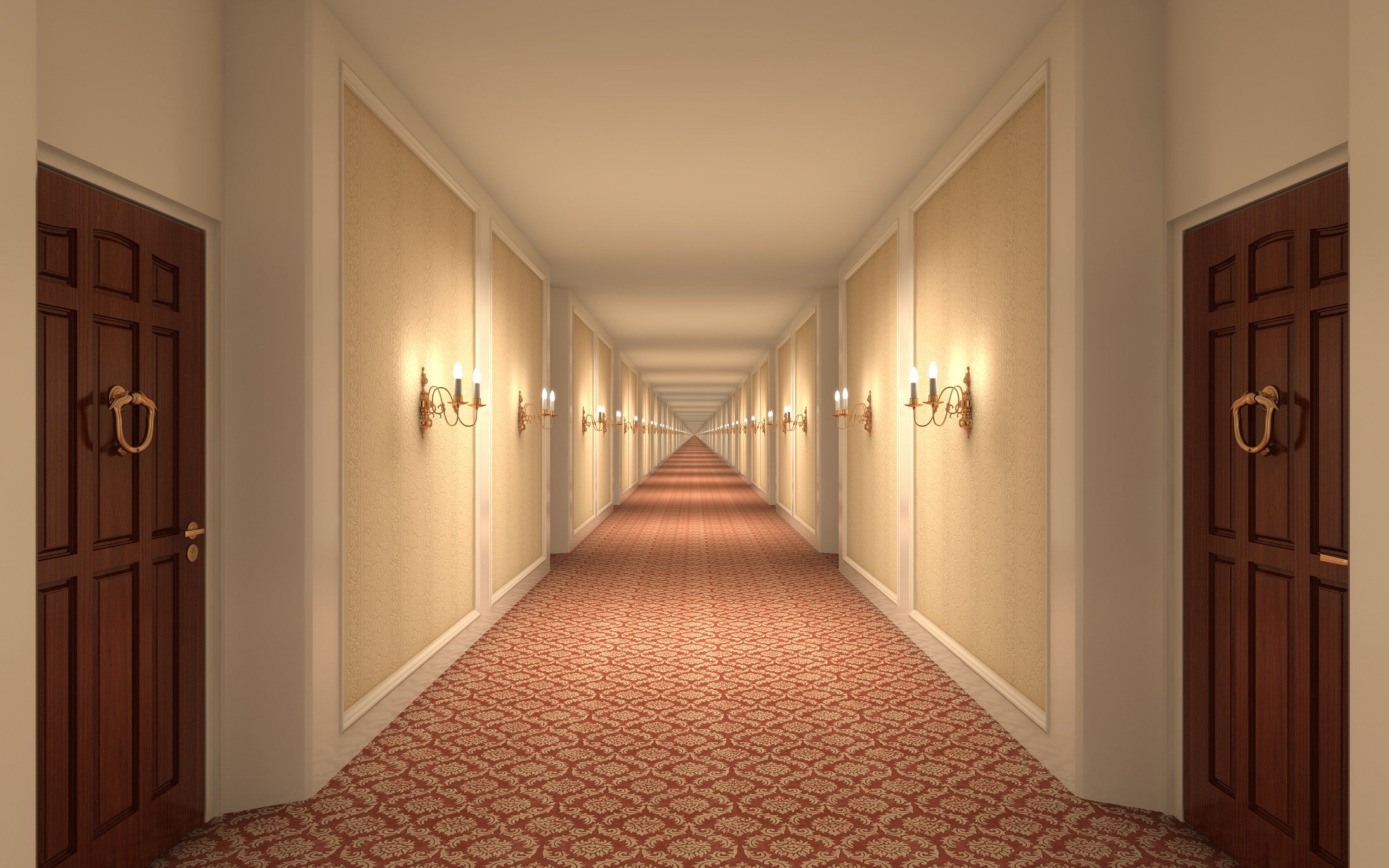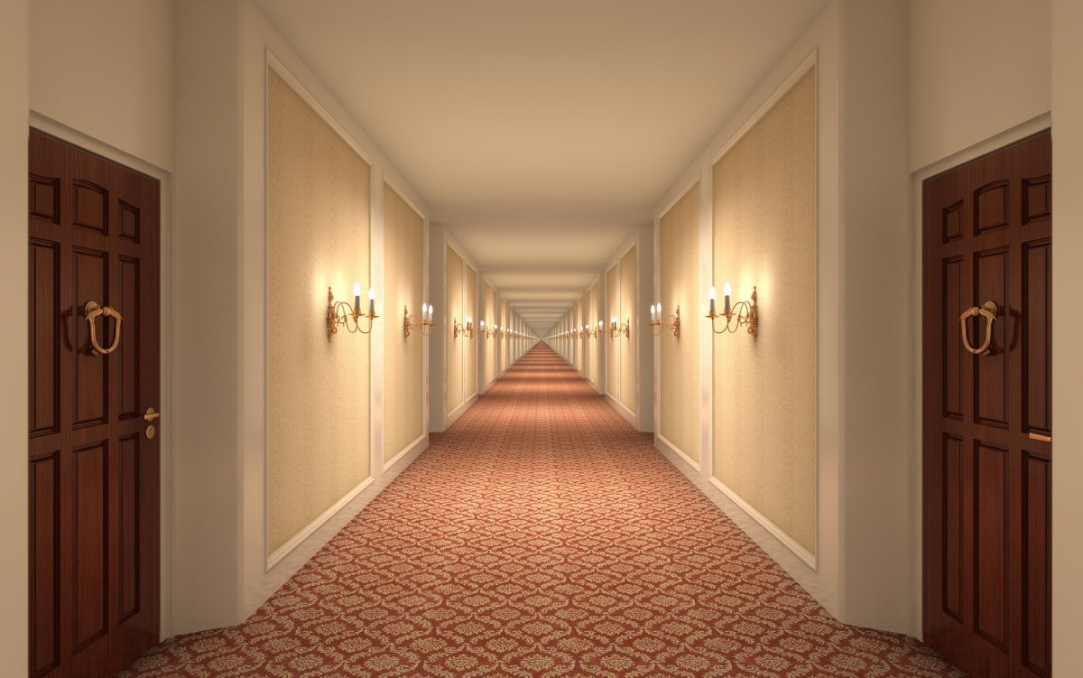 Длинный коридор с дверьми