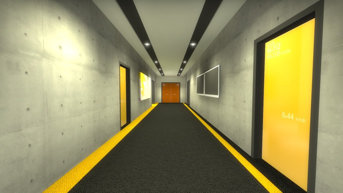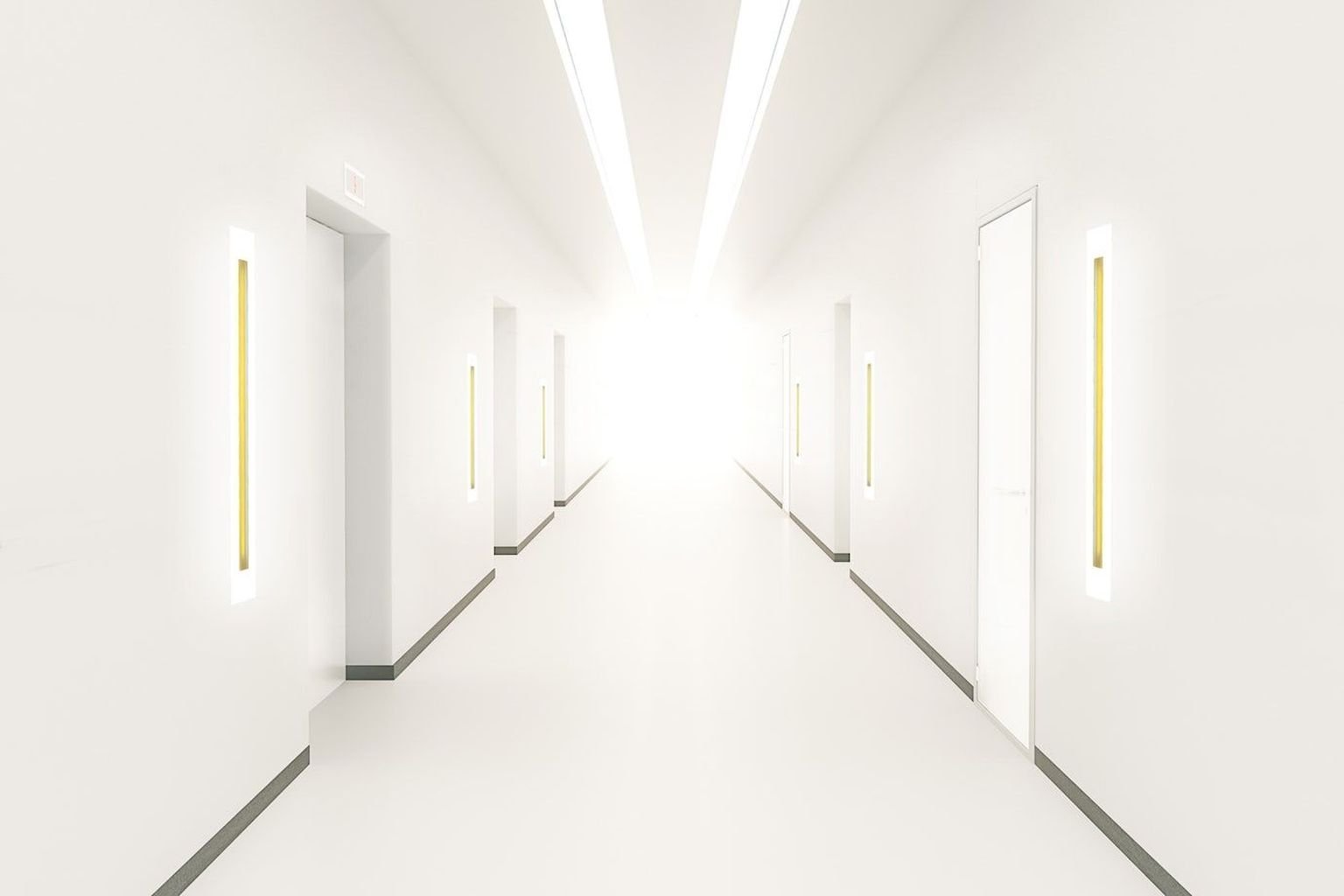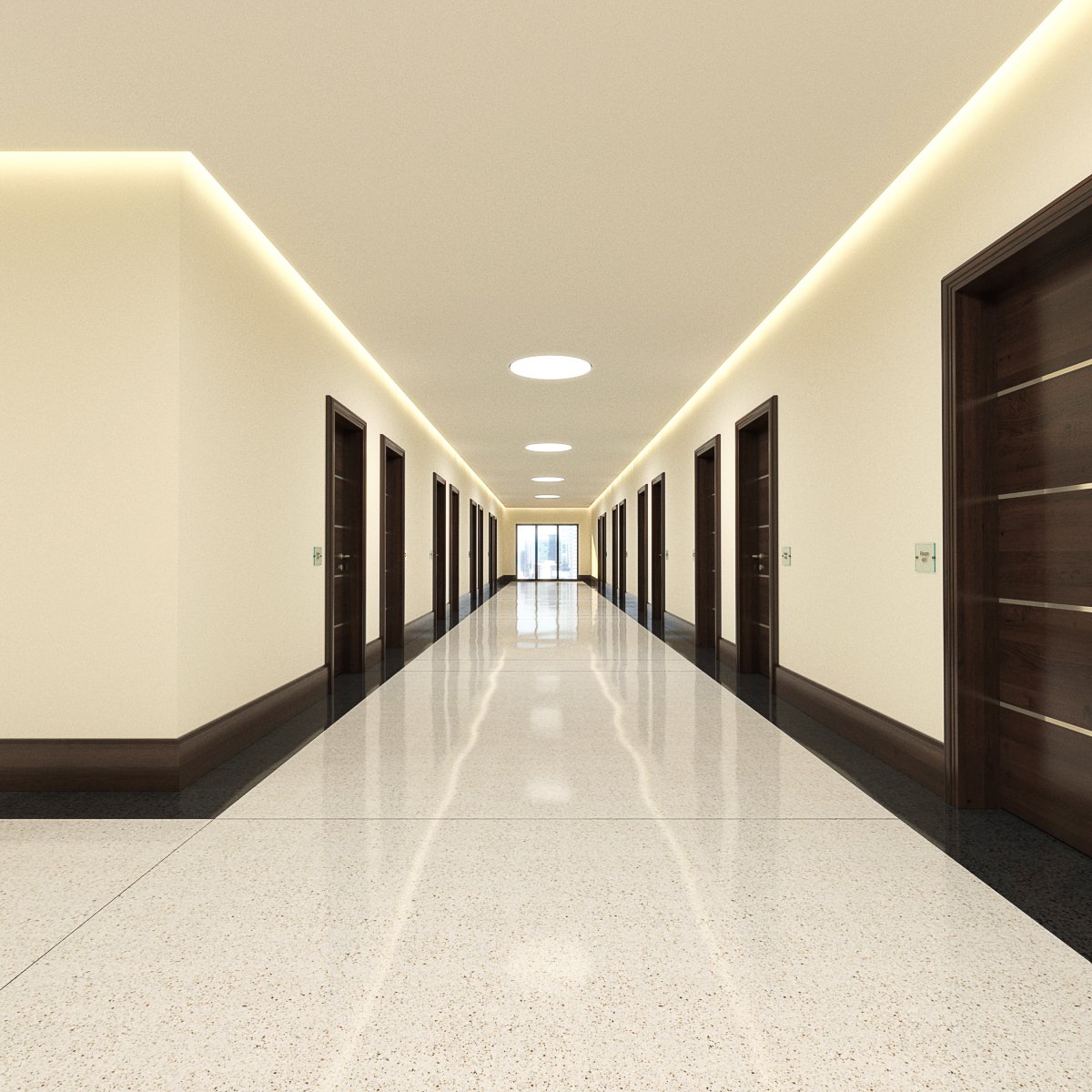 Длинный коридор с дверьми