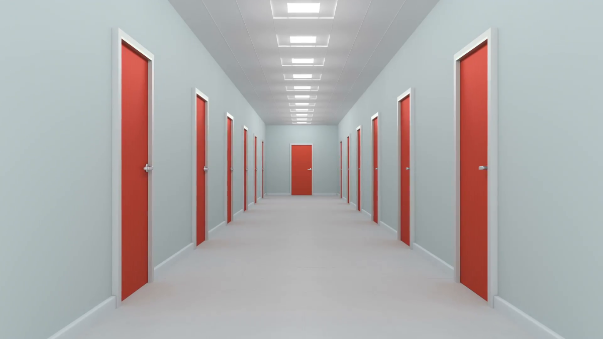 Коридор с множеством дверей
