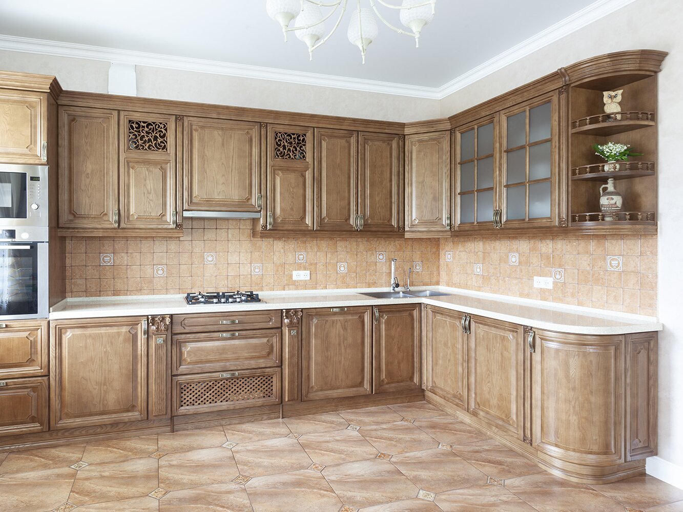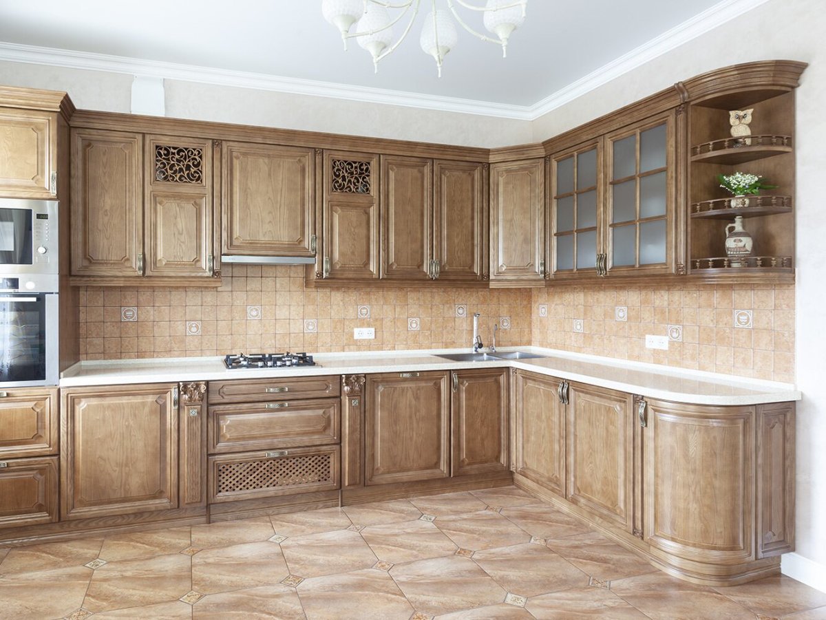 Кухня классика угловая деревянная