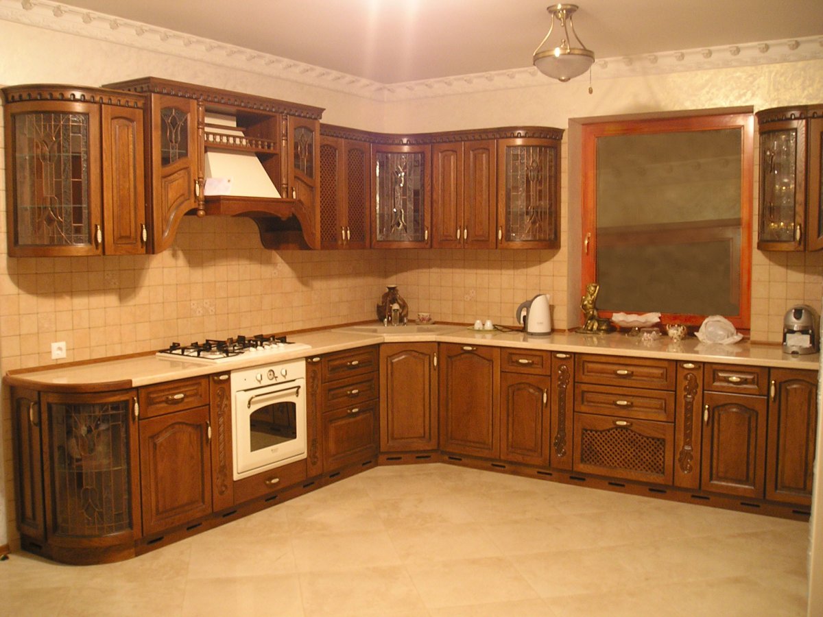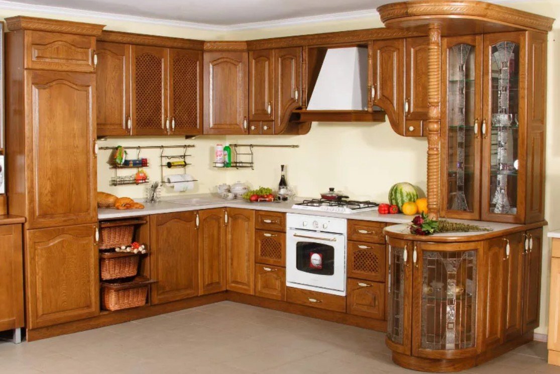 Угловые кухни из массива дерева