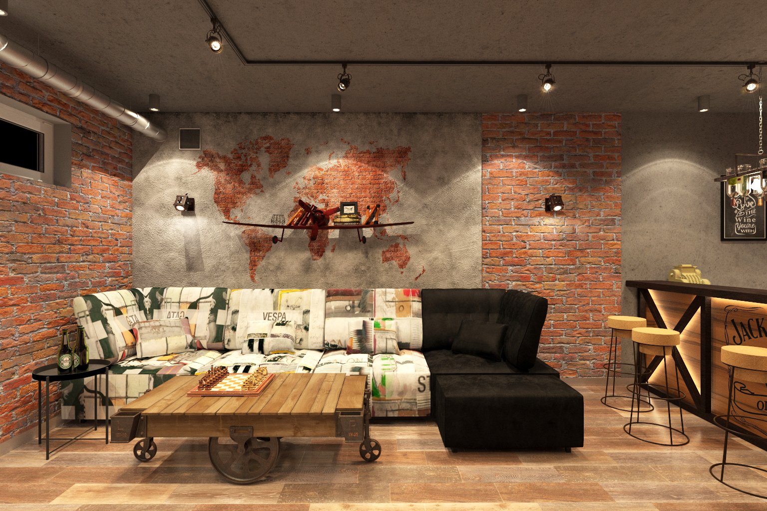 Зона отдыха в стиле лофт
