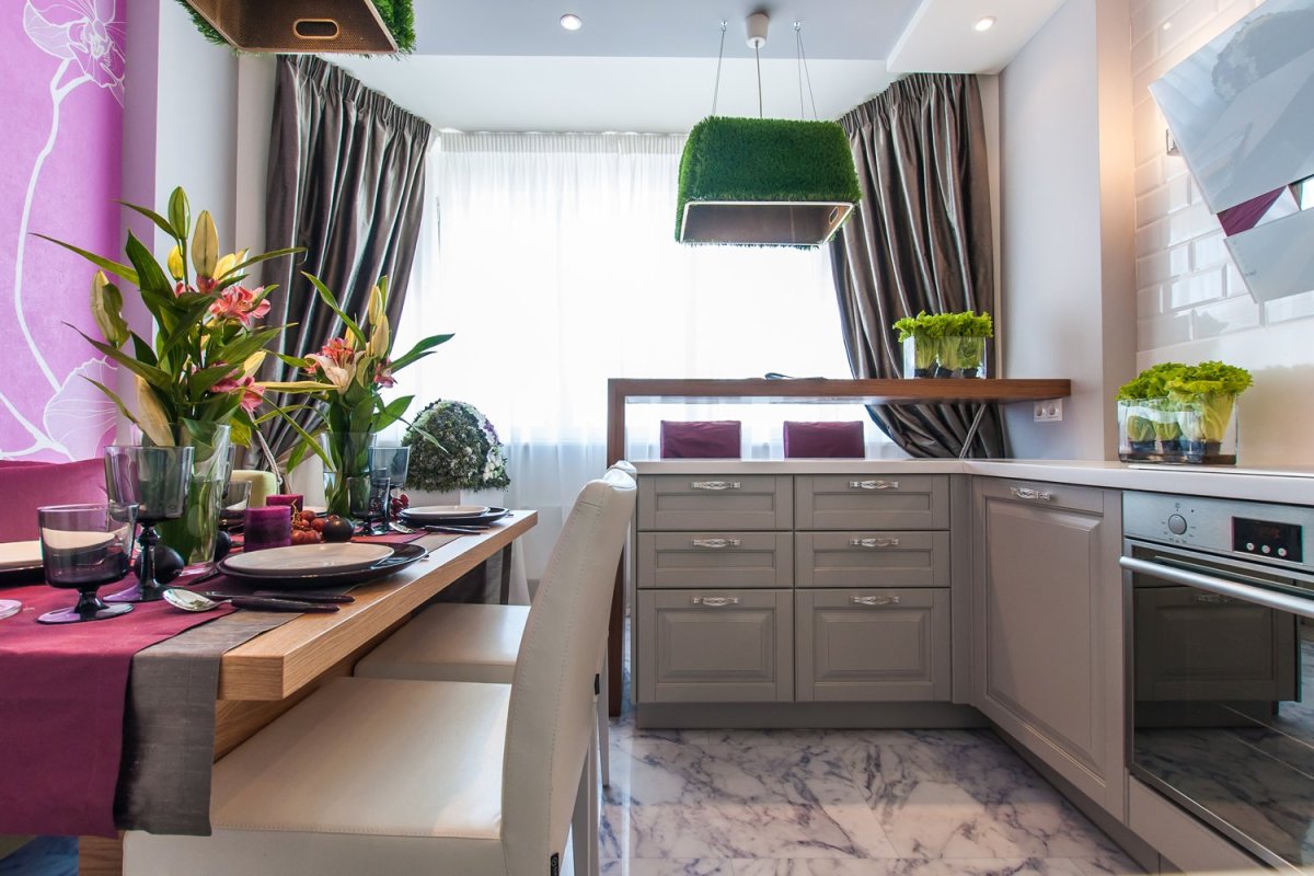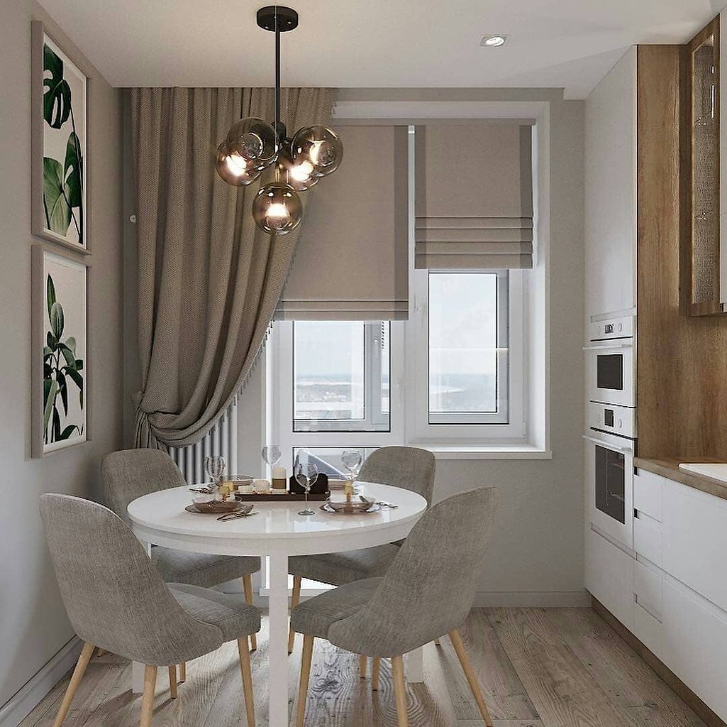 Серая кухня 9кв м интерьер штор