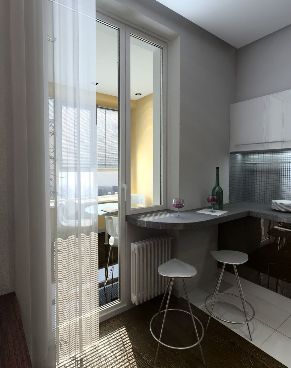 Совмещение балкона с кухней