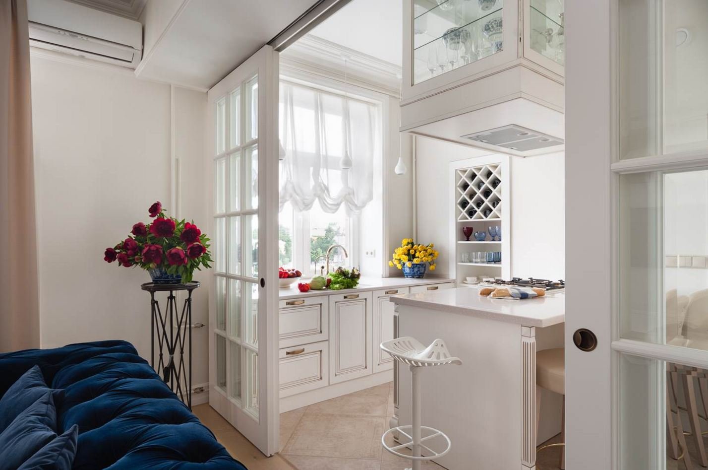 Интерьер кухни с балконом