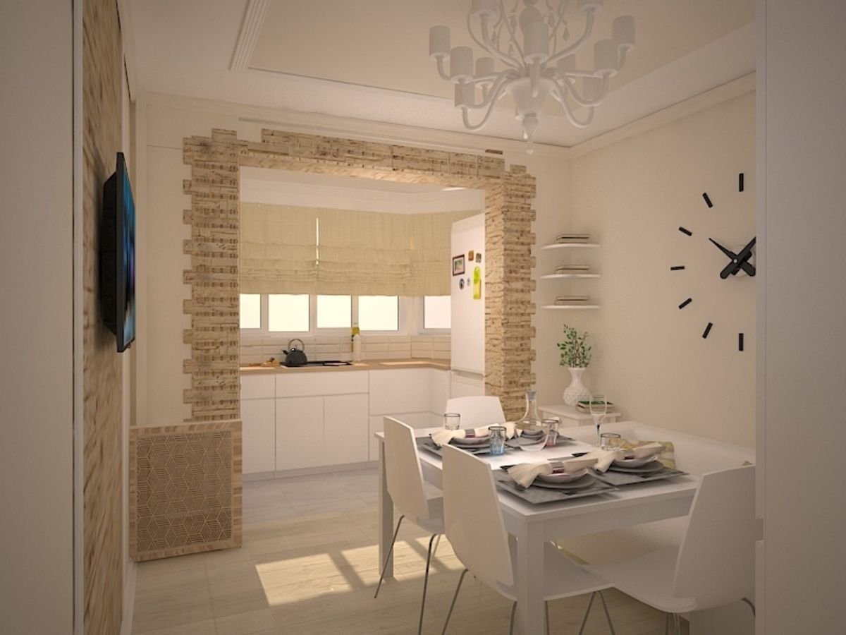 Интерьер кухни объединенной с балконом