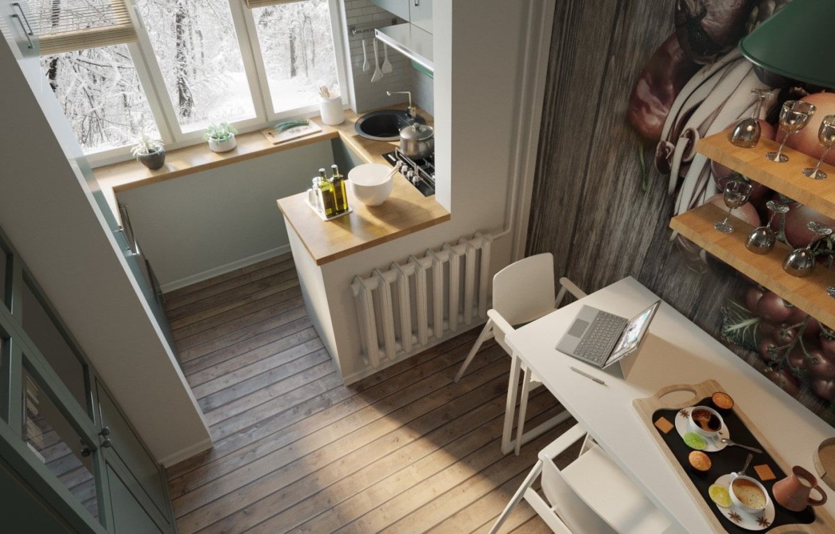 Планировка маленькой кухни с балконом