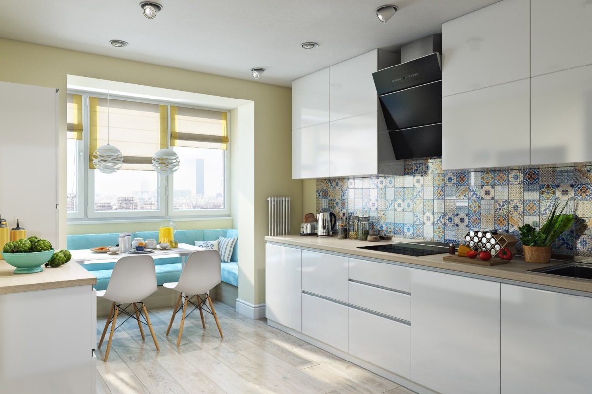 Интерьер кухни 12м2 с выходом на балкон