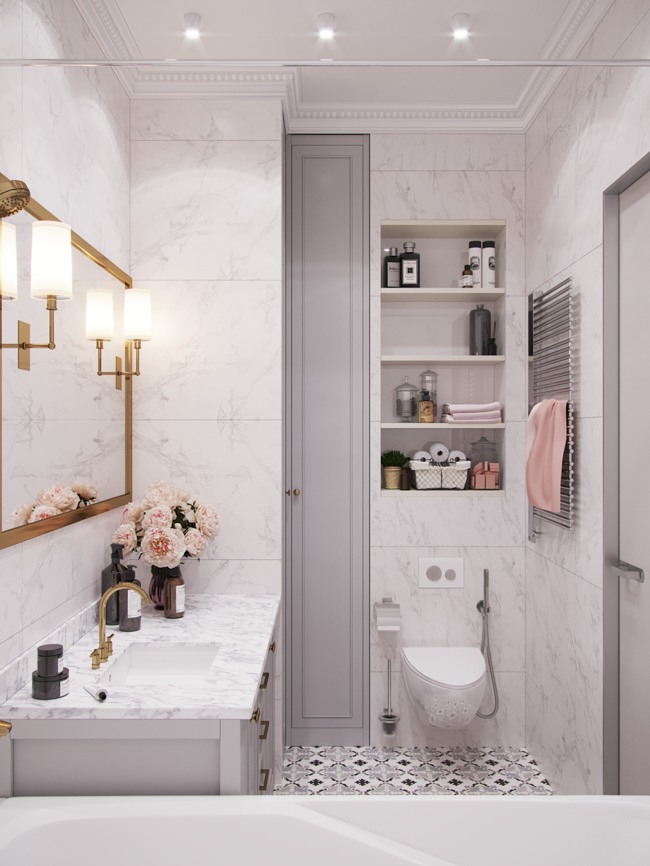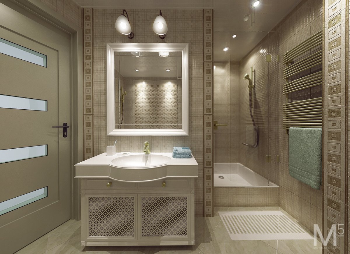 Планировки ванных комнат с душевой в классическом стиле