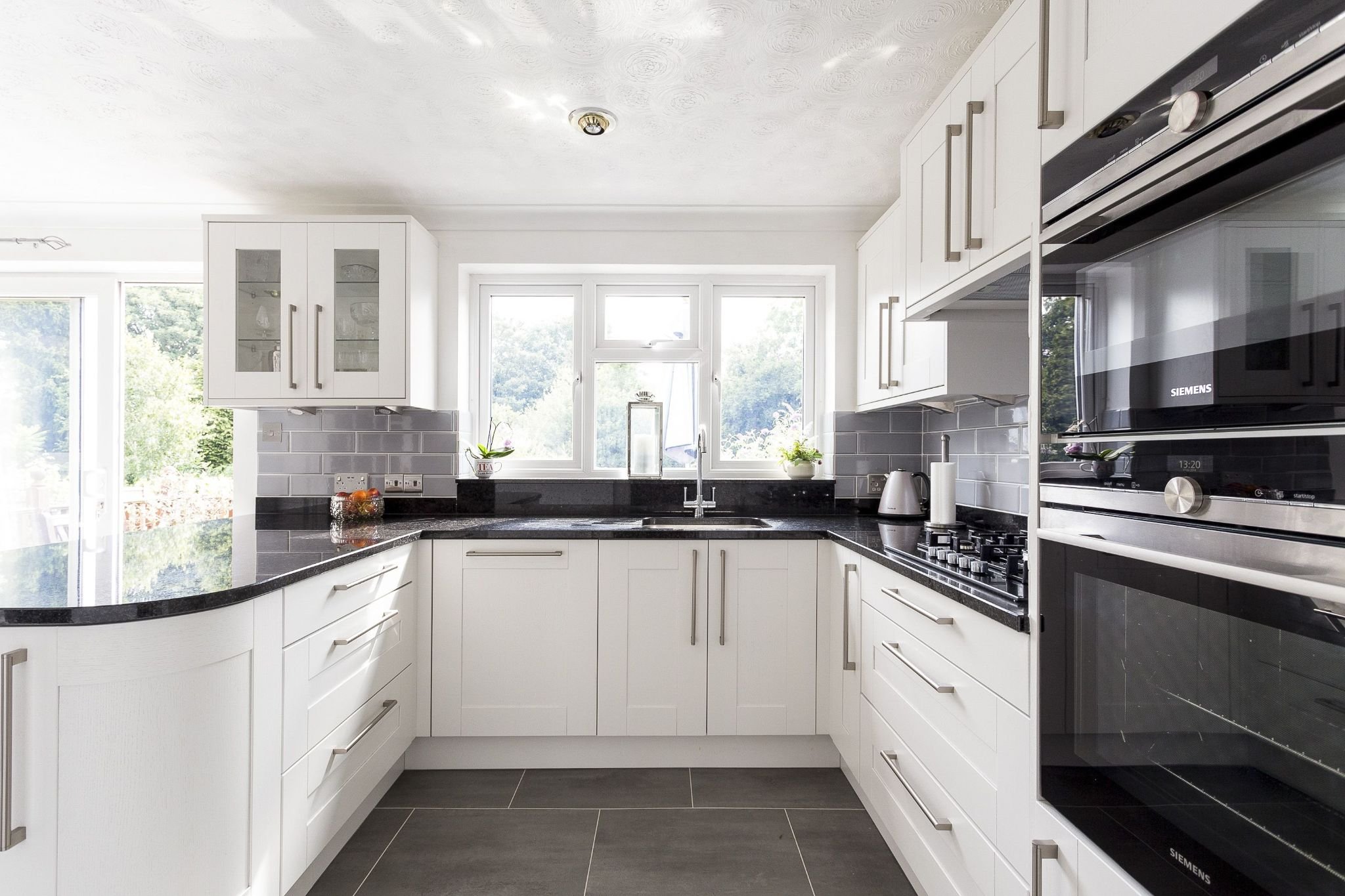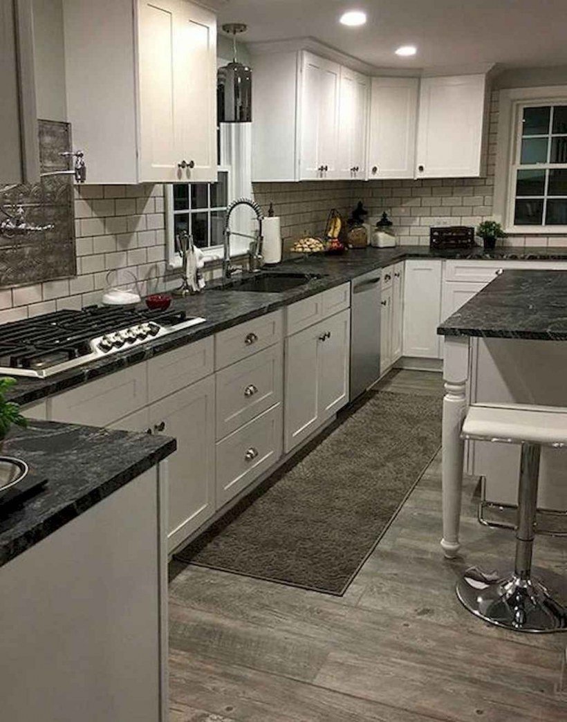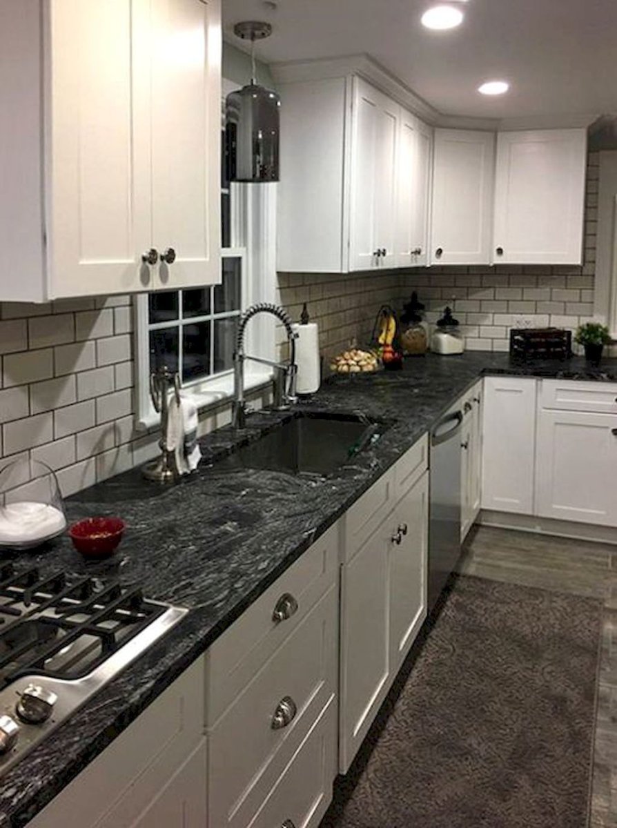 Белая кухня с черной столешницей