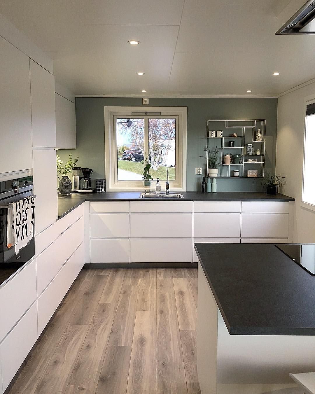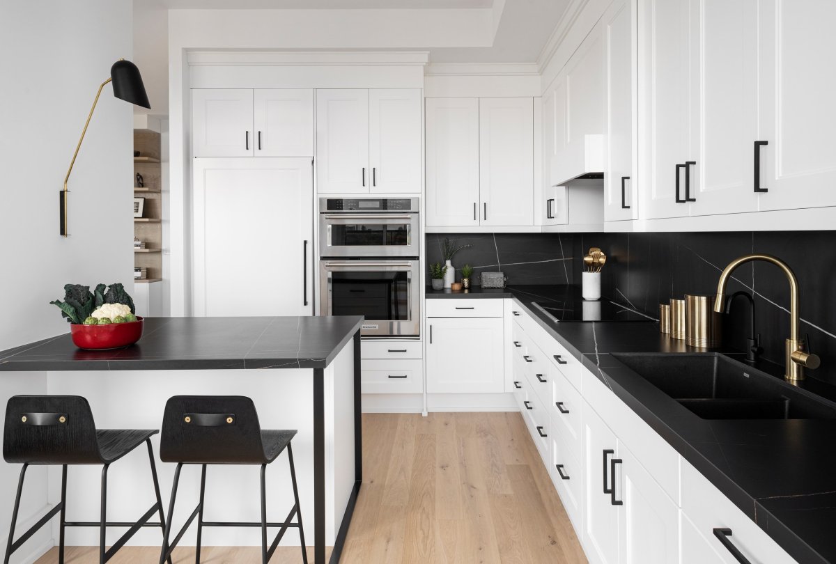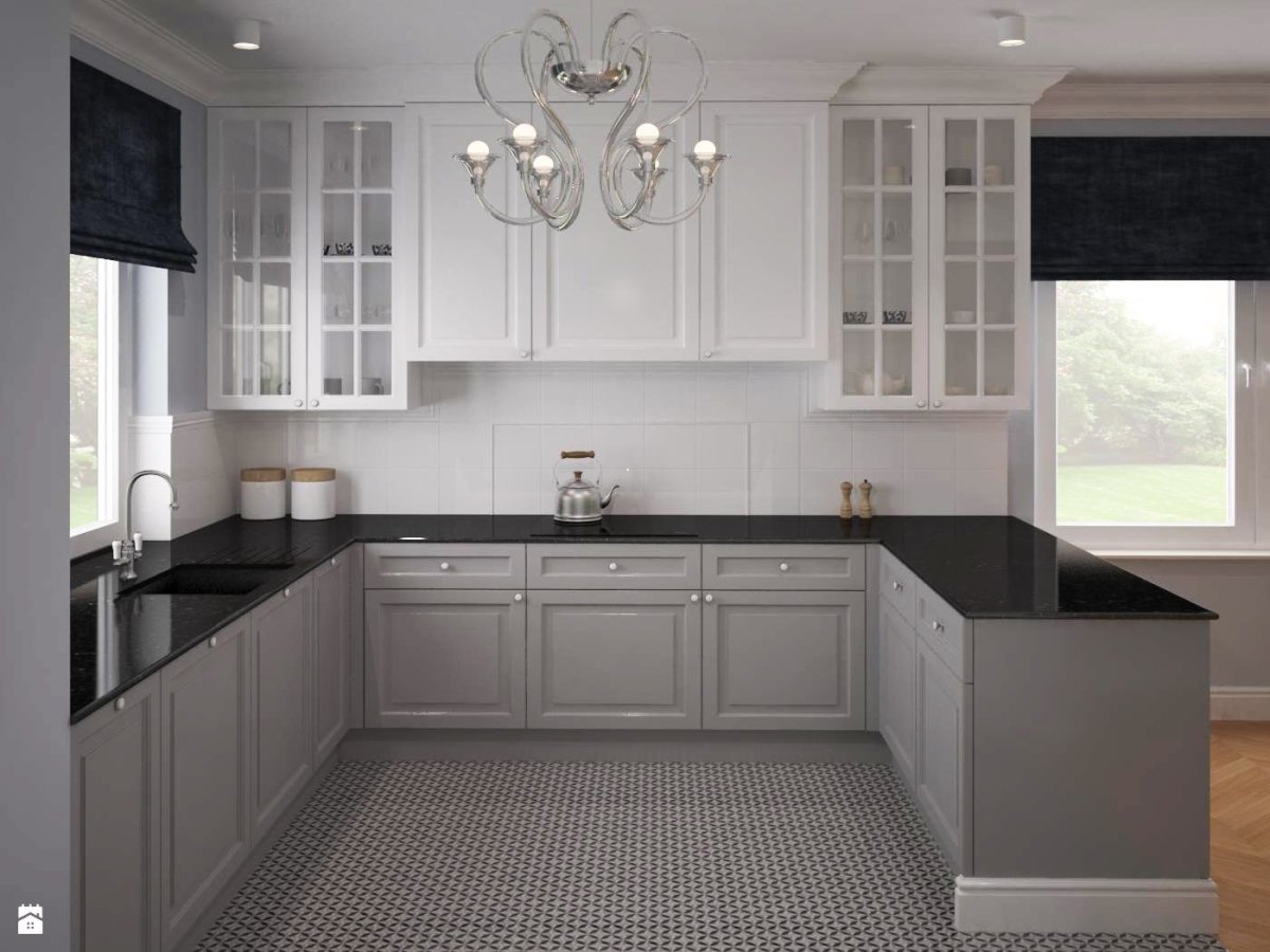 Скандинавская белая кухня с черной столешницей