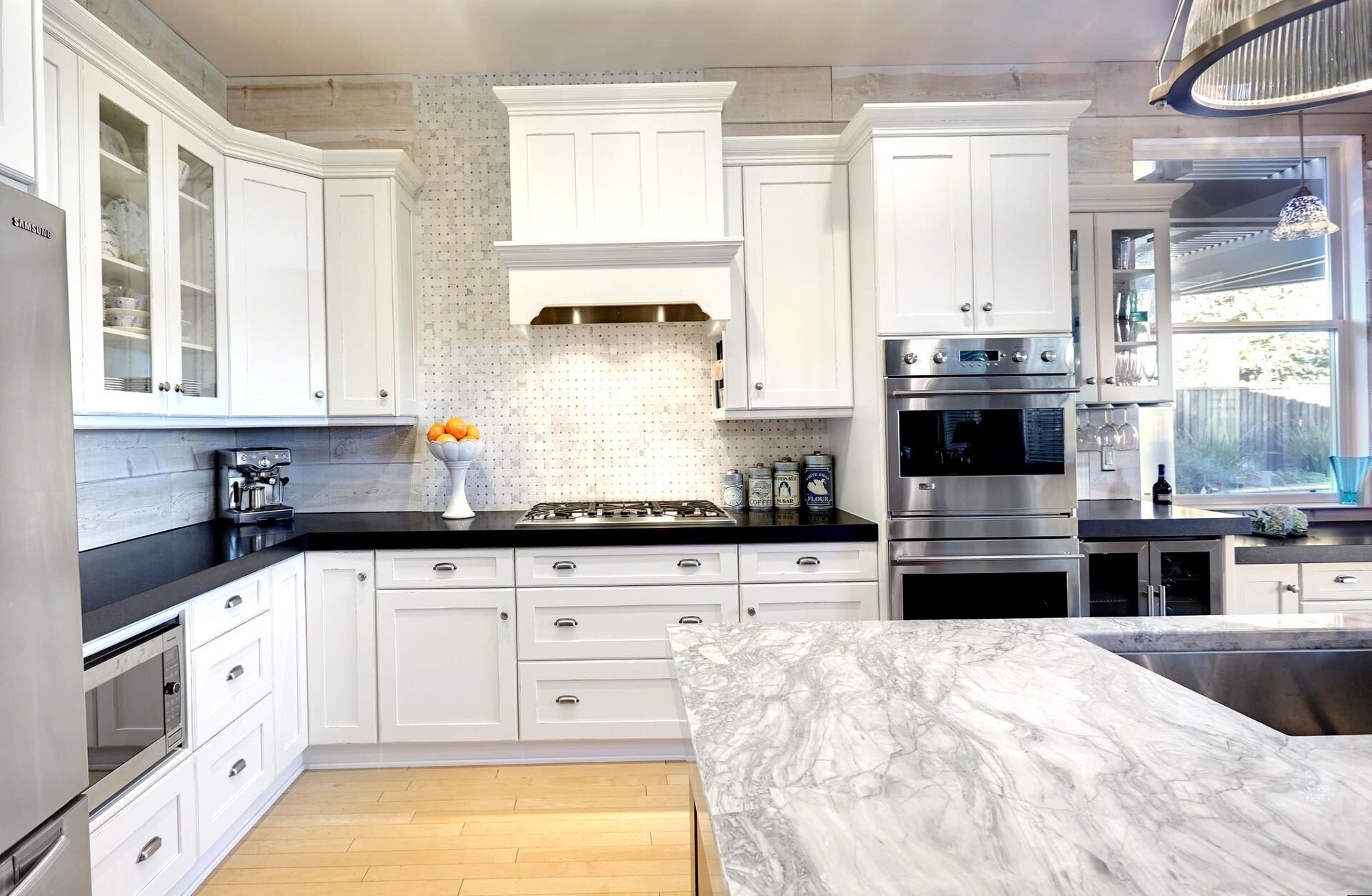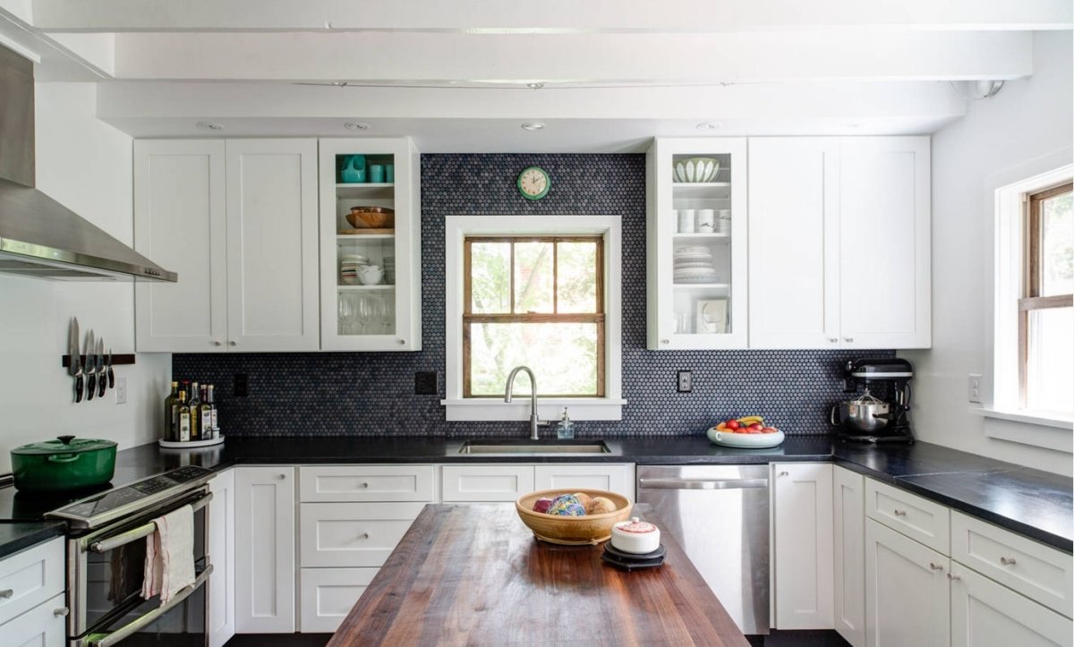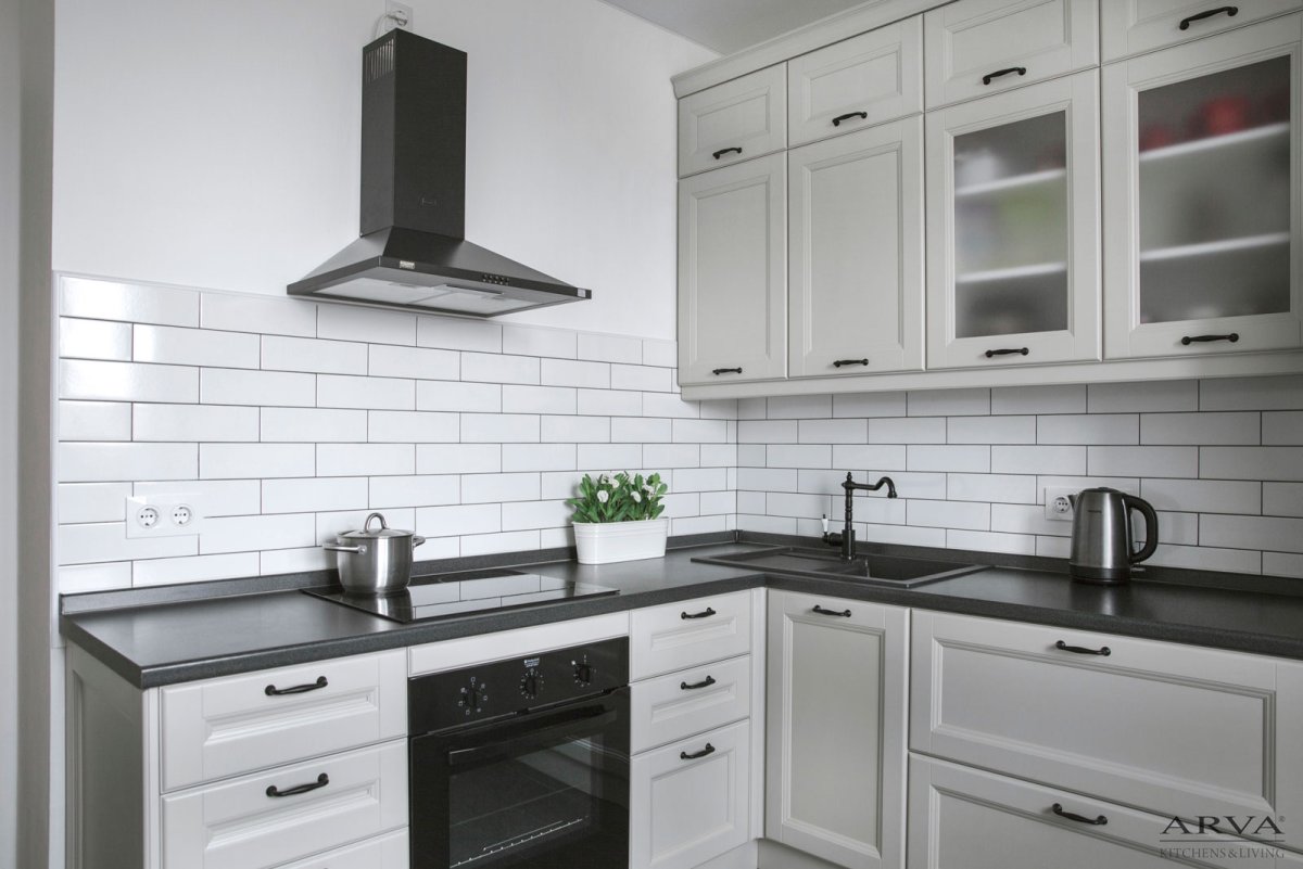 Фартук для белой кухни с черной столешницей