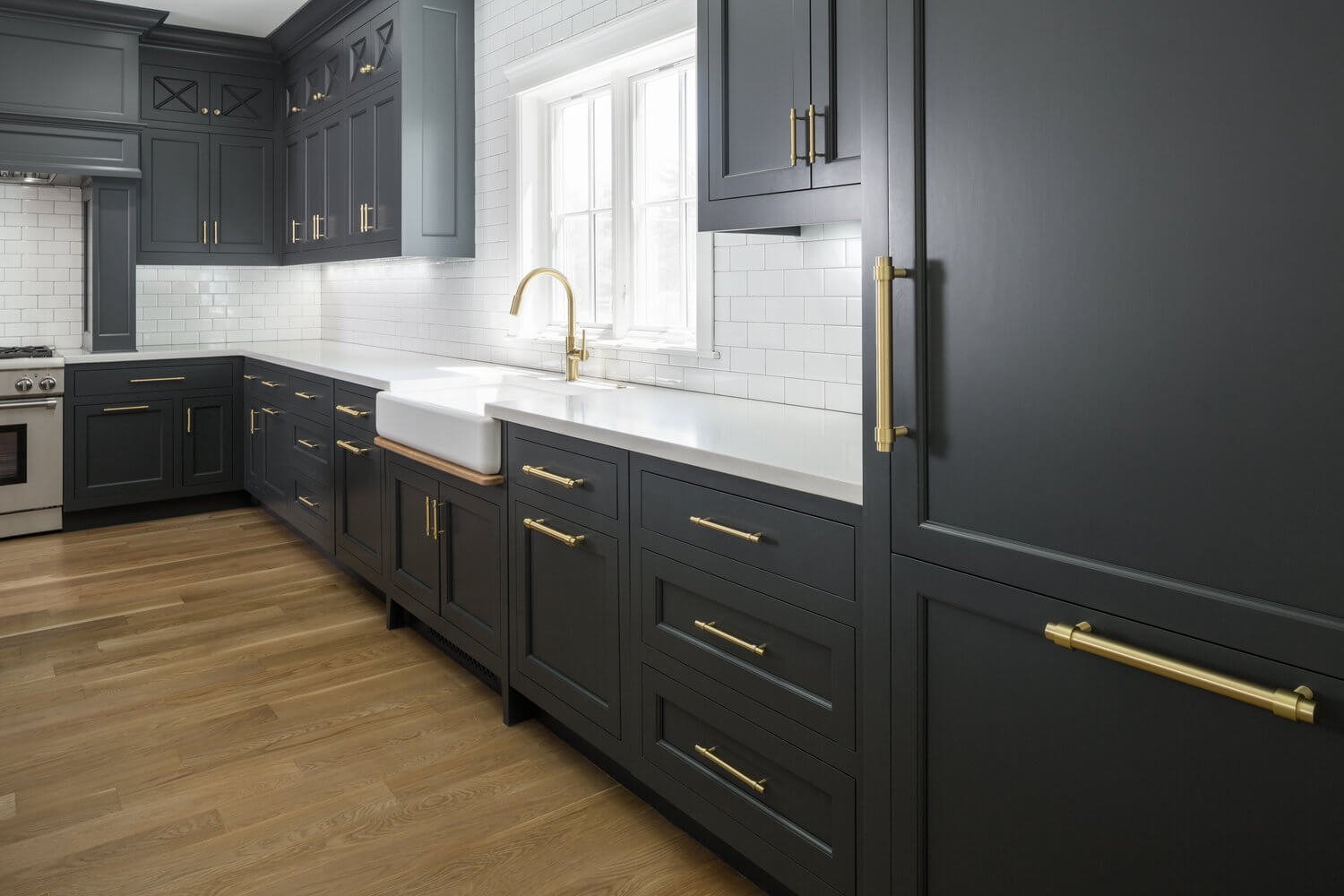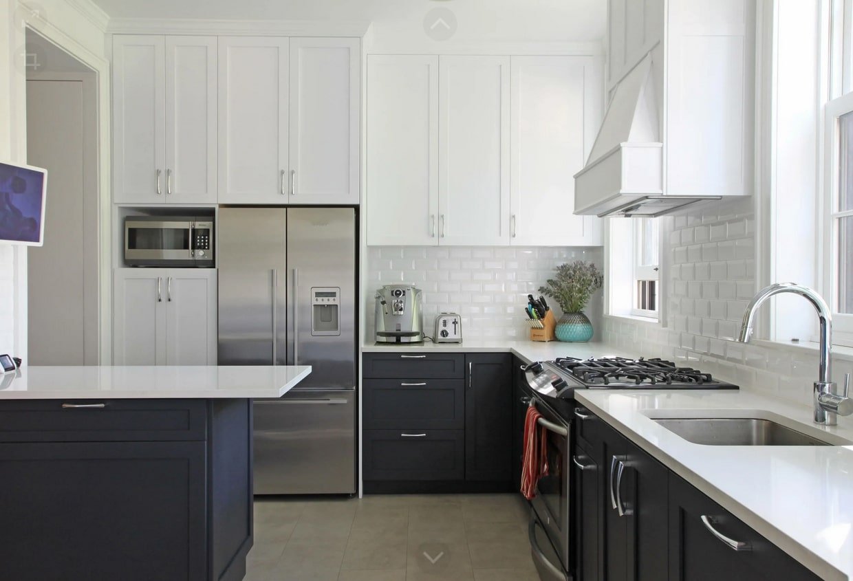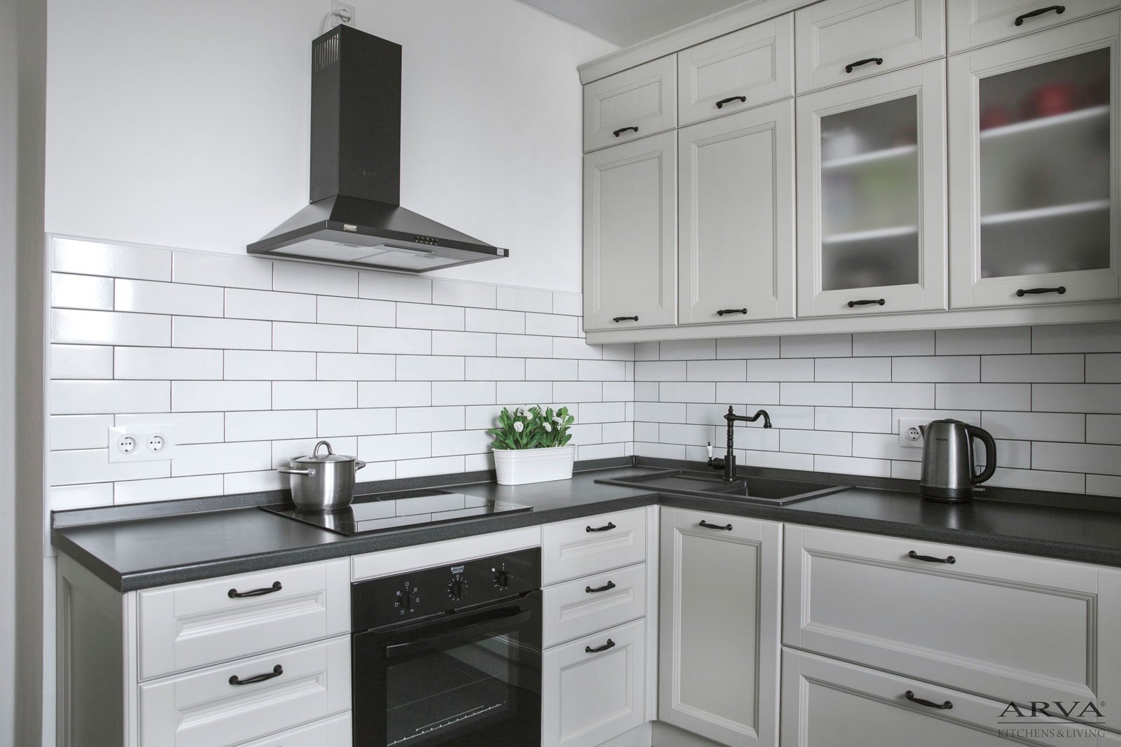 Белый кухонный гарнитур с черными ручками