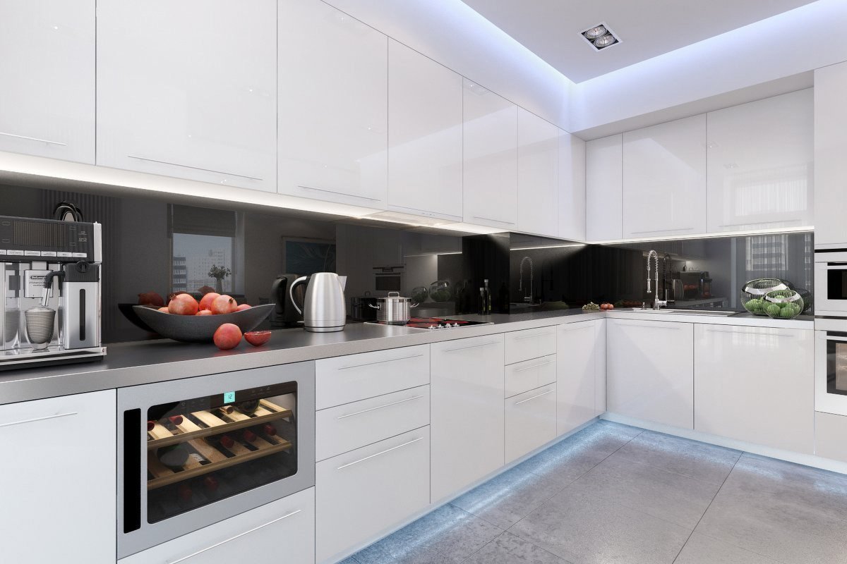 Фартук для белой глянцевой кухни