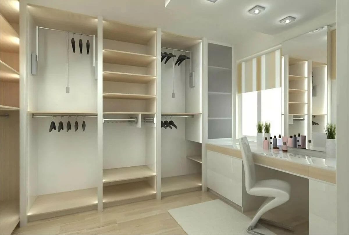 Дизайн комнаты гардеробной с окном